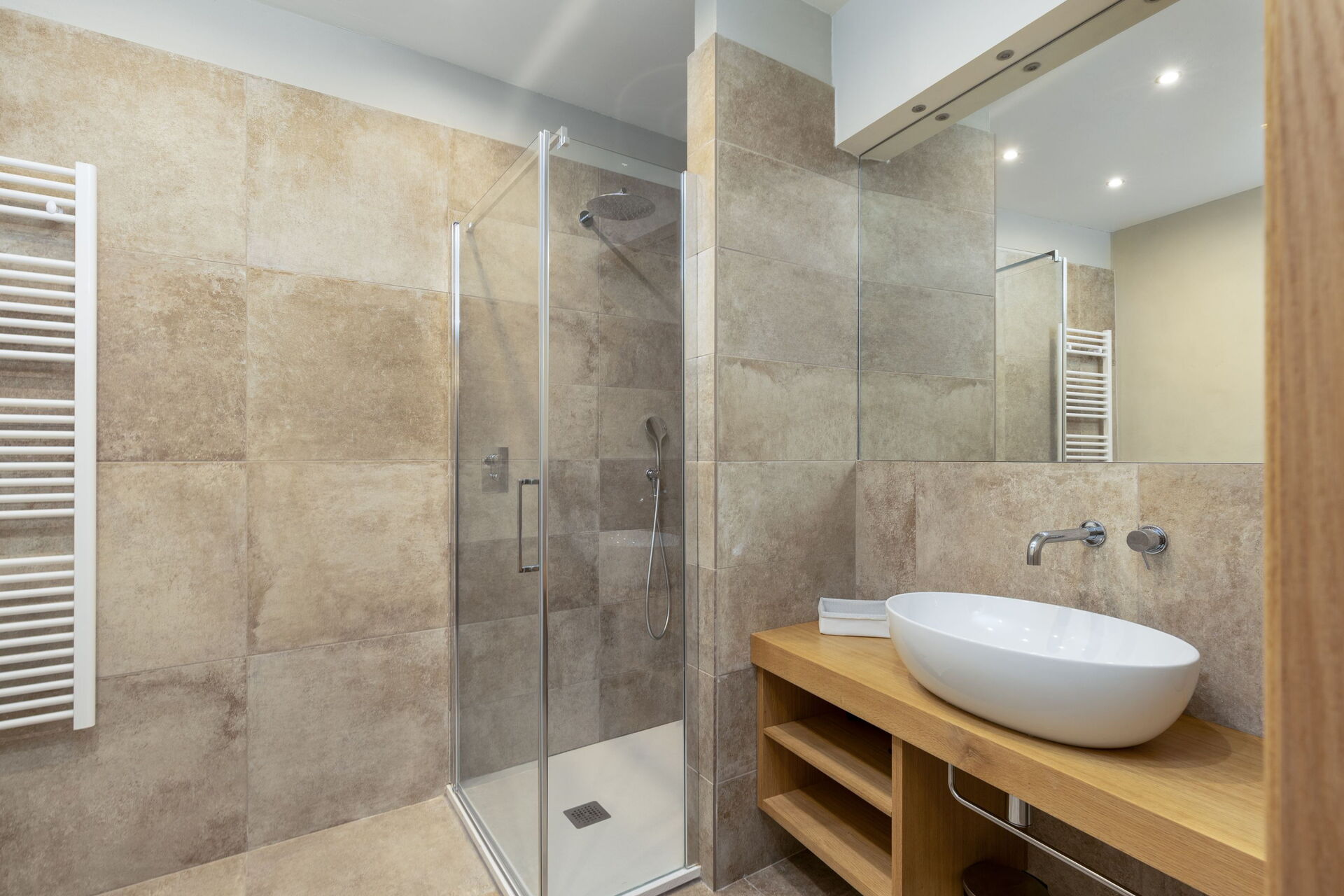 1er étage: 4 chambres doubles avec salle de bain privée avec douche, 1 chambre double avec salle de bain privée avec douche (sans fenêtre), chambre avec 2 lits simples et salle de bain privée avec douche (sans fenêtre).