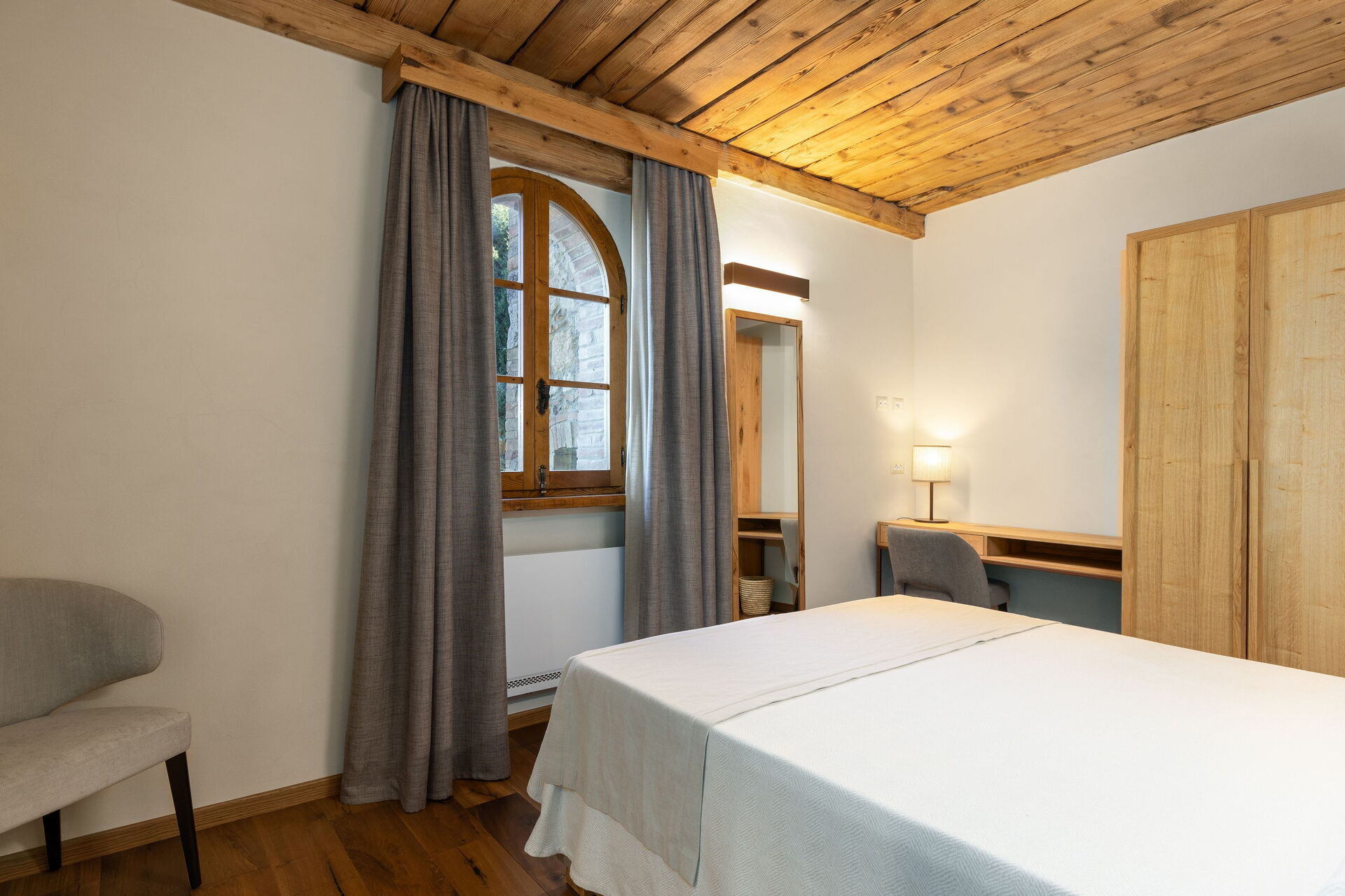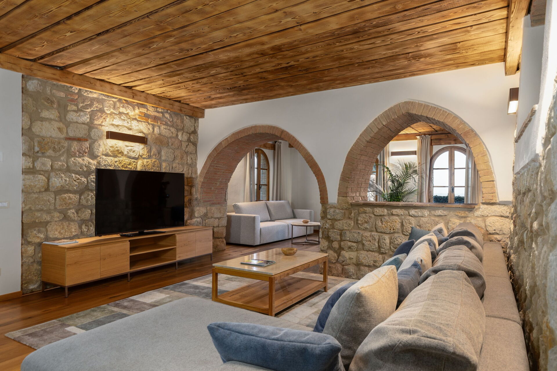 La villa a été habilement restaurée en 2023 , en conservant ses caractéristiques architecturales d'origine et a été transformée en une luxueuse maison de campagne dotée de tout le confort. Son ameublement est très confortable et ses pièces bien soignées peuvent accueillir jusqu'à 14 personnes dans 7 belles chambres.