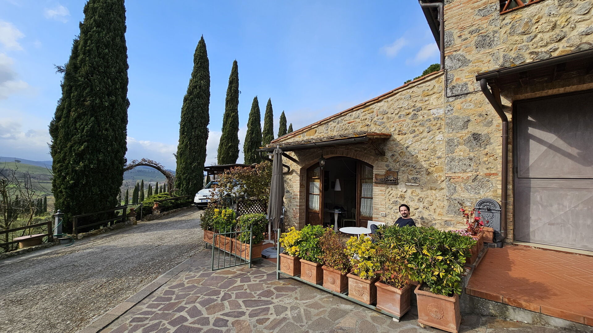 Wir haben dort Ende März drei schöne Tage verbracht und wurden sehr freundlich empfangen. Sie haben einen herrlichen Pool, der Ende März natürlich noch nicht offen war, da es zu kalt war. Das Agriturismo liegt nur 5 Minuten außerhalb des Stadtzentrums San Gimignano, also nur einen kurzen Spaziergang entfernt, wo es einige großartige Restaurants und Geschäfte gibt. Die Aussicht von den Terrassen der Wohnungen in die eigenen Weinberge und Olivenhaine ist wunderschön. Wir kommen gerne wieder.