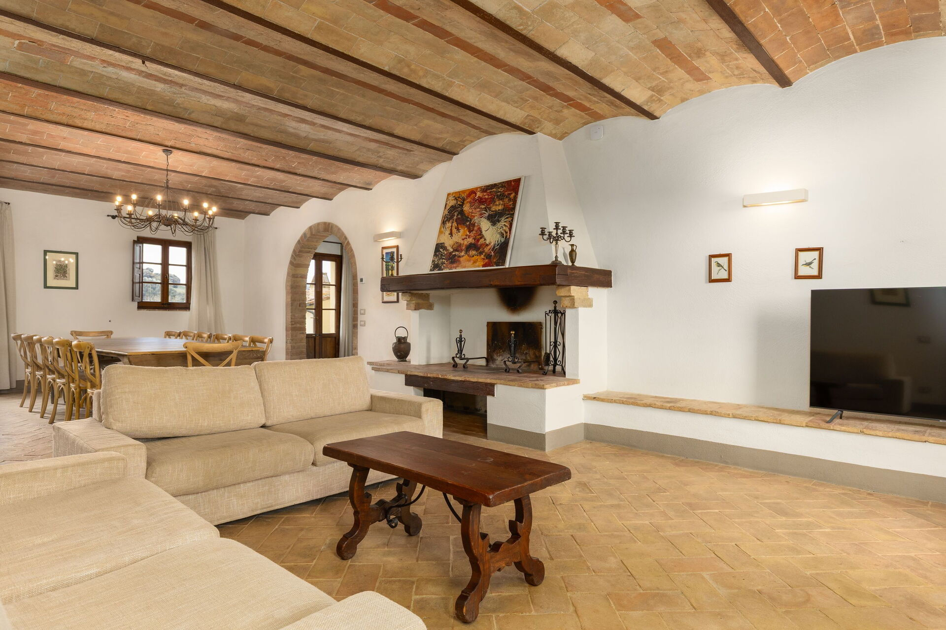 Although the Villa is dated, the amount of space in terms of sitting areas, bedrooms (7) and washrooms was amazing. There is also a separate building (as noted on the listing) which provided an additional bedroom, washroom, sitting area and kitchen -perfect for a couple. The fenced pool area was a hit with our grandchildren and adults and despite not being heated was still perfect for swimming. We received daily pool service, garbage removal and throughout our stay did not experience any issues. The most positive aspect of this Villa was the short driving distance to area attractions and towns such San Gimignano where we visited several times (a car is a must) with fabulous restaurants and shopping. The CO OP in town was great for picking up groceries. We visited several other beautiful towns and restaurants as recommended by Emma as well experienced the wines offered by the on-site winery. If anyone is looking for great space and privacy I would definitely recommend VILLA IL CAGGIO for your next vacation. Thank you to and Valentina from Posarelli Villas for your assistance with our bookings and to Emma for the on-site assistance.
