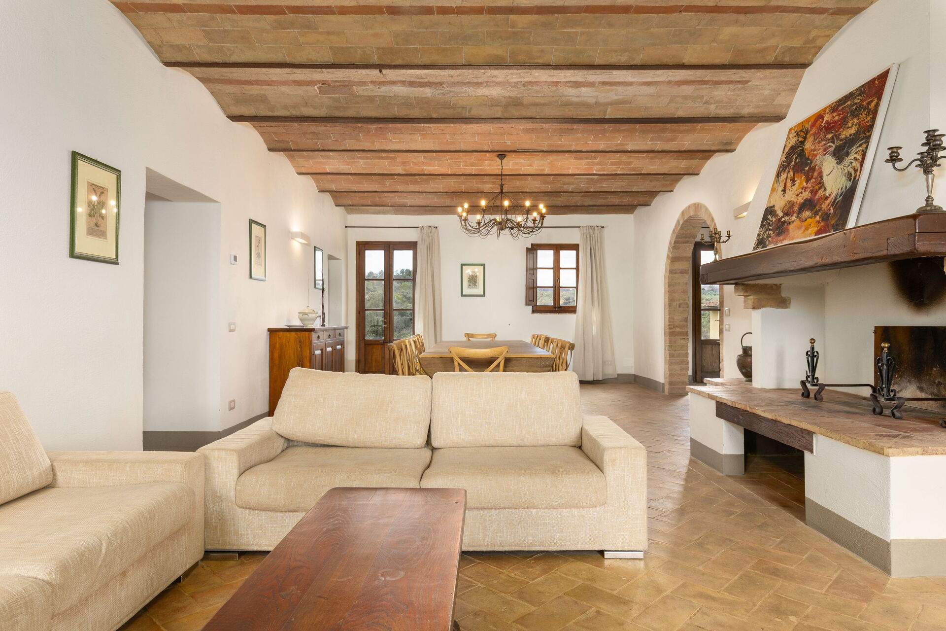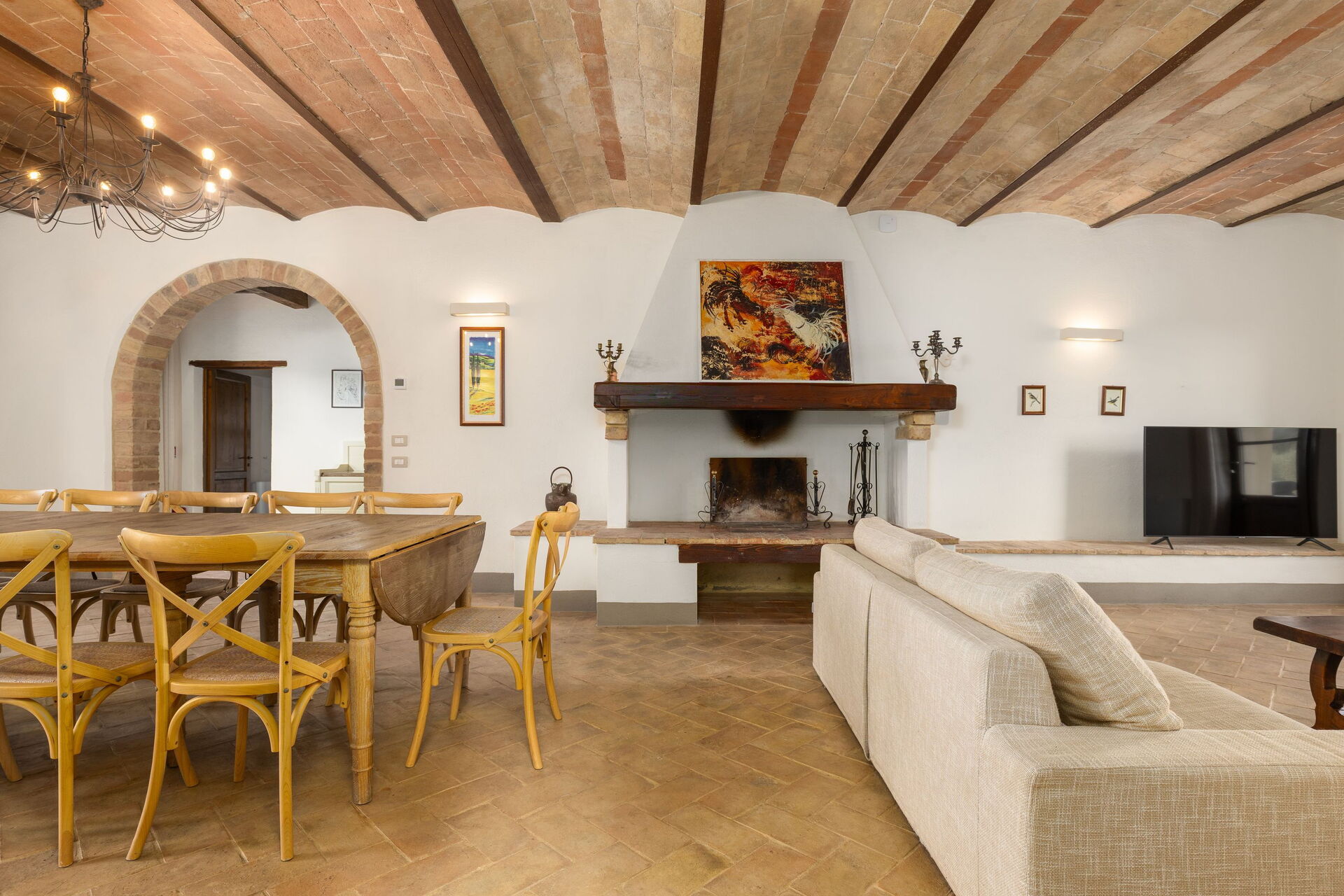 Villa Il Caggio est composée d'une maison principale et d'une belle dépendance. Les intérieurs sont splendides et accueillants. Ameublement de goût, style rustique typique des maisons de campagne toscanes. Un cadre unique et suggestif qui vous fera vivre des vacances authentiques dans le Chianti. Grâce à ses 7 chambres et ses nombreux espaces communs, cette villa de luxe peut héberger confortablement jusqu'à 14 personnes. Une villa idéale pour une grande famille ou un groupe d'amis. La maison est dotée de tout confort et garantit à ses hôtes un maximum de fonctionnalité. Position très tranquille.