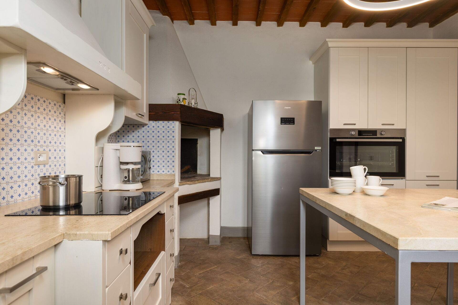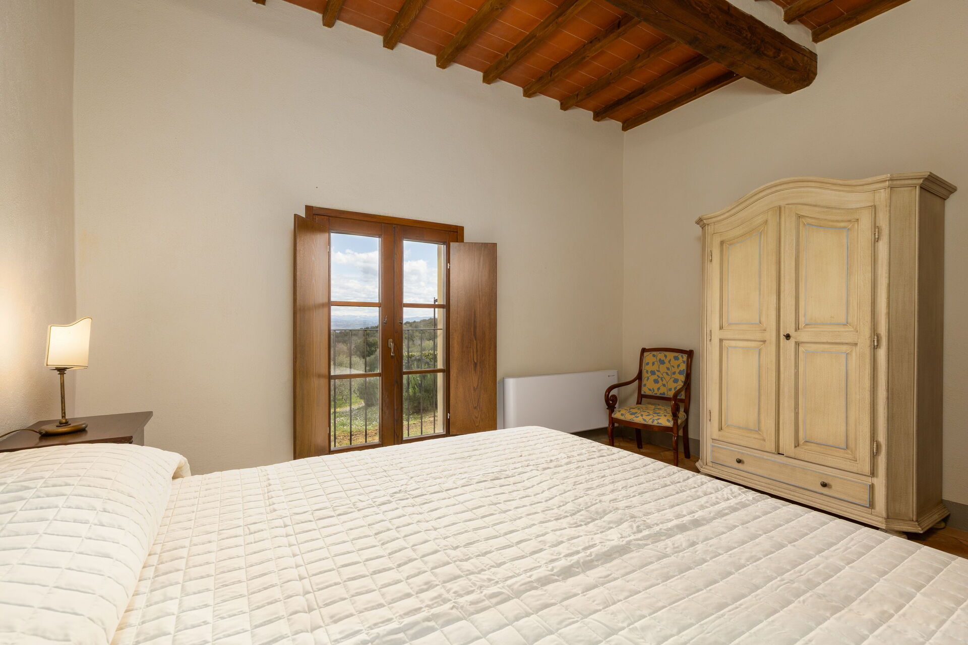 A l’extérieur, les hôtes ont à disposition un beau jardin panoramique avec une grande piscine privée (chaises longues et parasols): l'endroit idéal pour se détendre ou se rafraîchir durant les plus chaudes journées d'été. Magnifique vue panoramique qui s'étend sur les collines et la campagne du Chianti. Un espace barbecue et une terrasse couverte vous permet de préparer et déguster de délicieux repas en plein air, même durant les soirées plus douces de la belle saison.