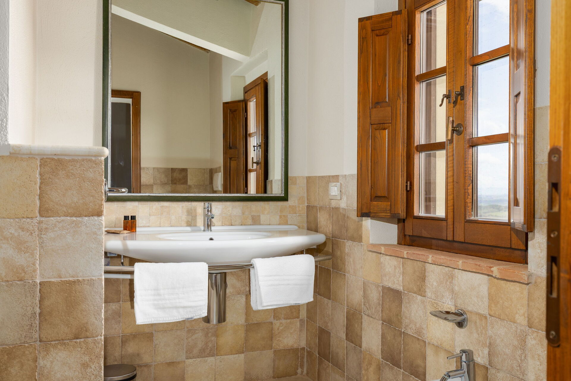 Position très tranquille qui garantit une intimité totale au coeur d'un vaste domaine, parmi les collines riches en oliviers et vignes qui entourent la belle petite ville de San Gimignano.