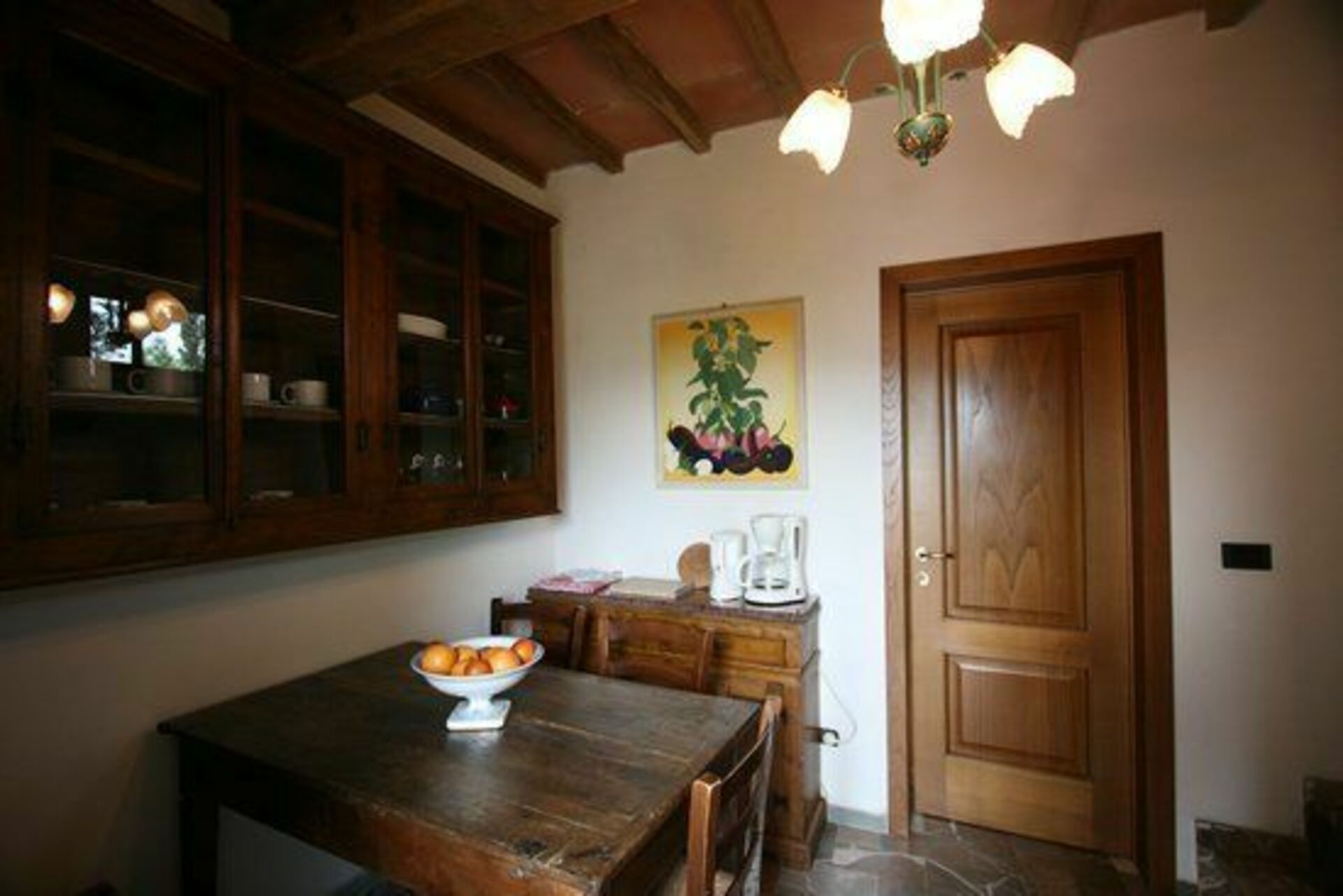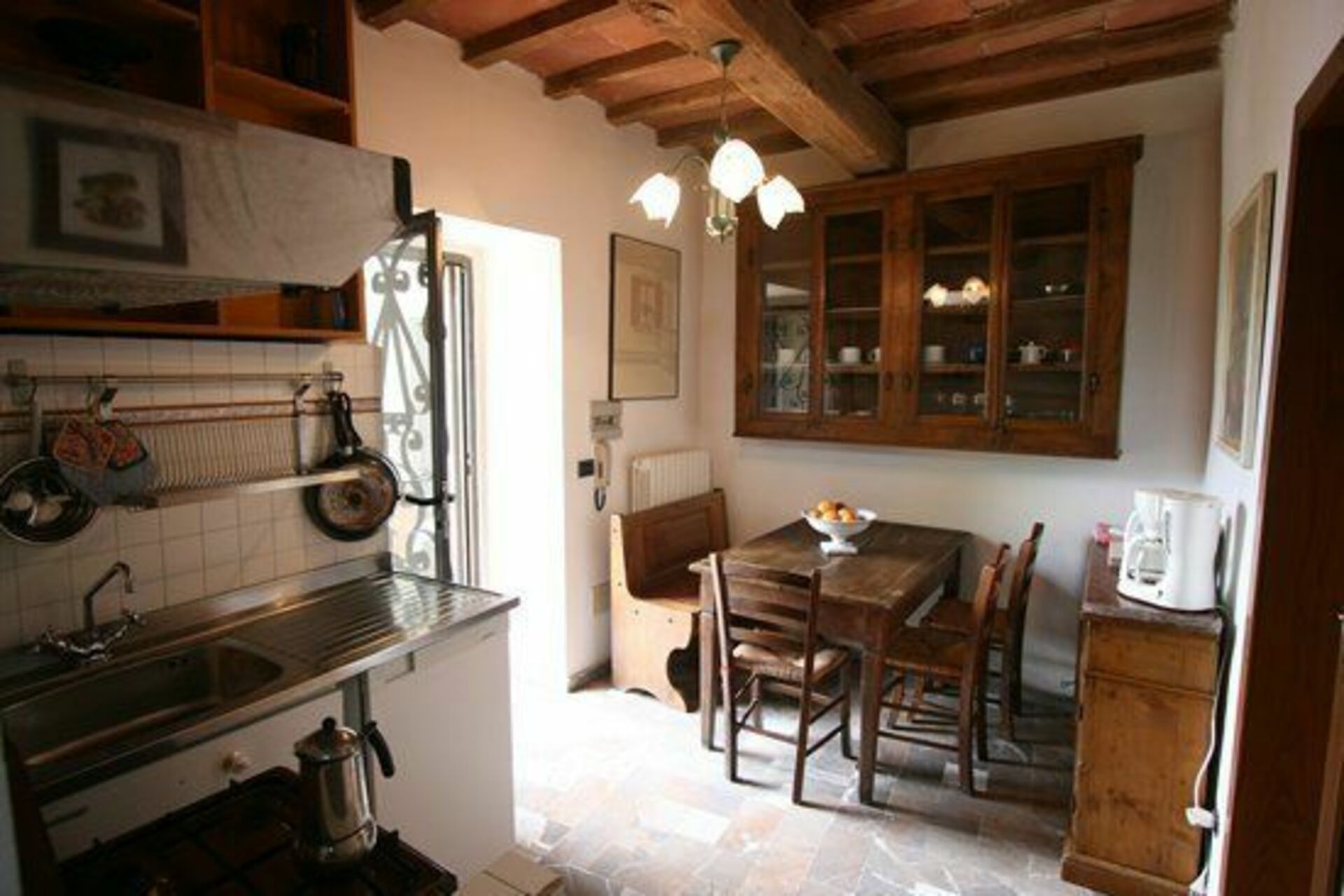 Plafonds avec poutres apparentes et meubles de style.