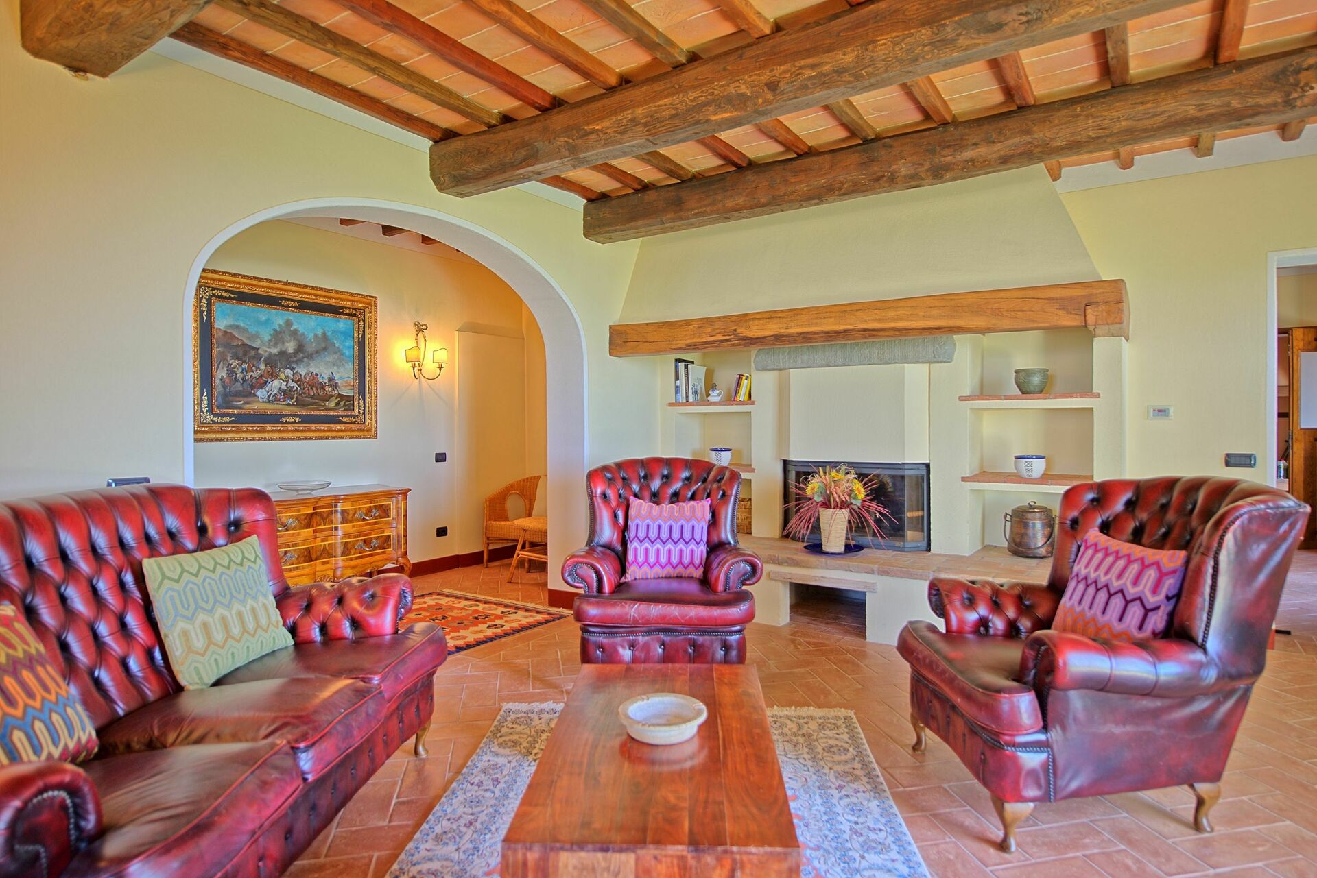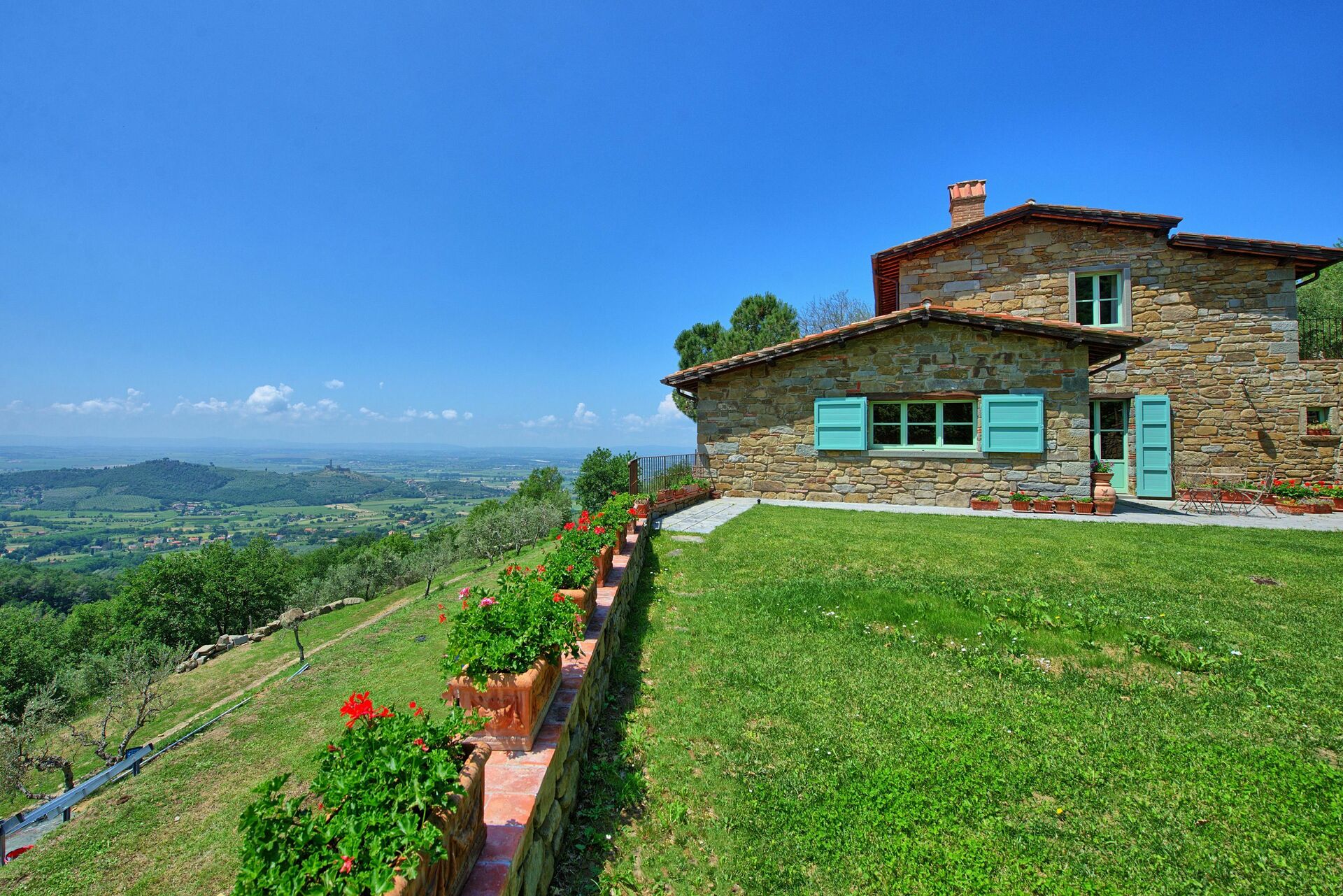 Distances: Castiglion Fiorentino avec magasins variés et gare ferroviaire à 3km, Cortona à 10km, Arezzo à 20km, Montepulciano à 40km, Rapolano Terme avec établissements thermaux à 50km, Pérouse à 60km, Sienne à 80km, Florence à 95km, Orvieto à 100km, San Gimignano à 120km.