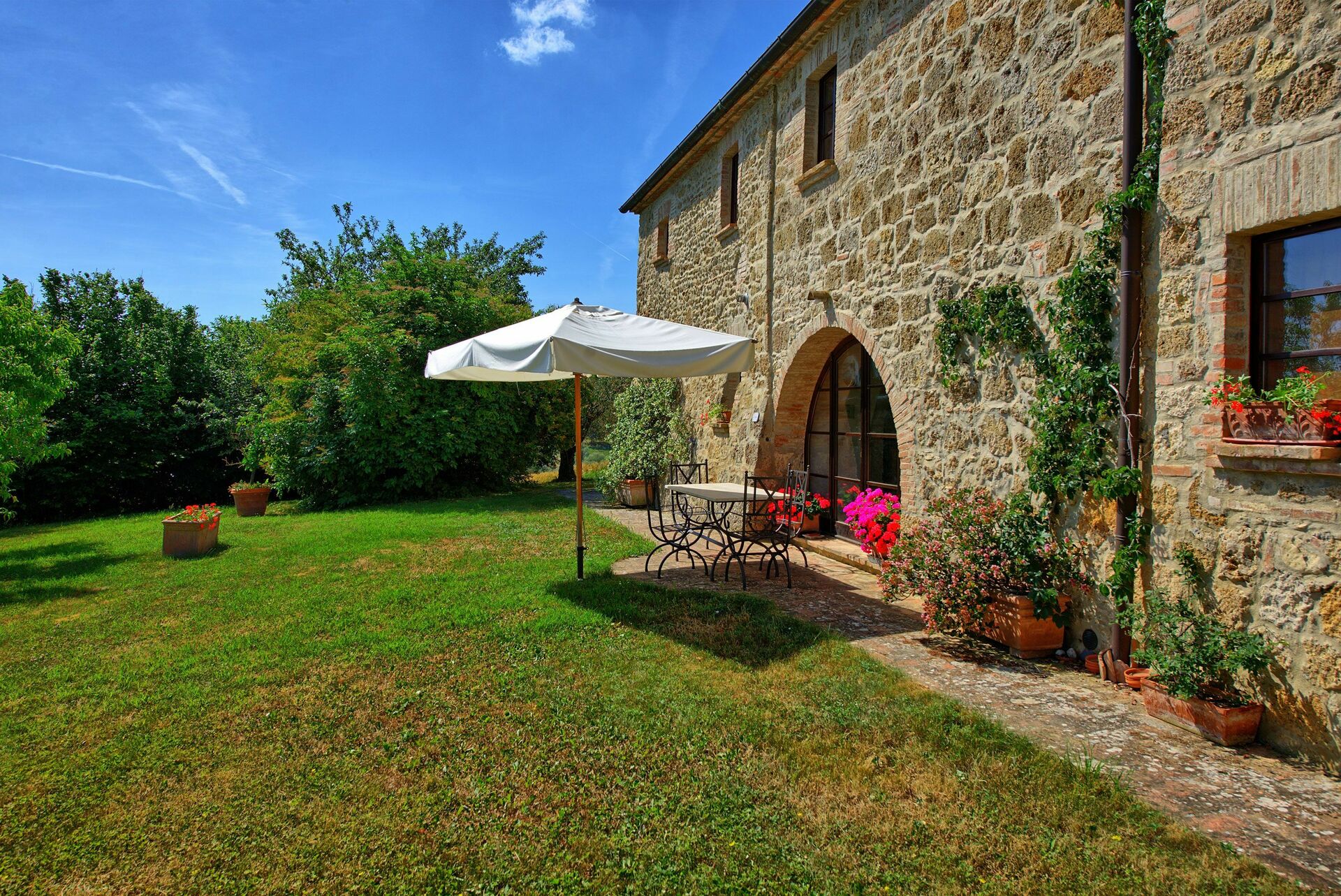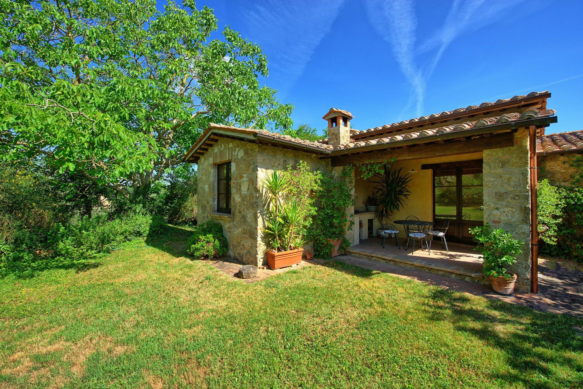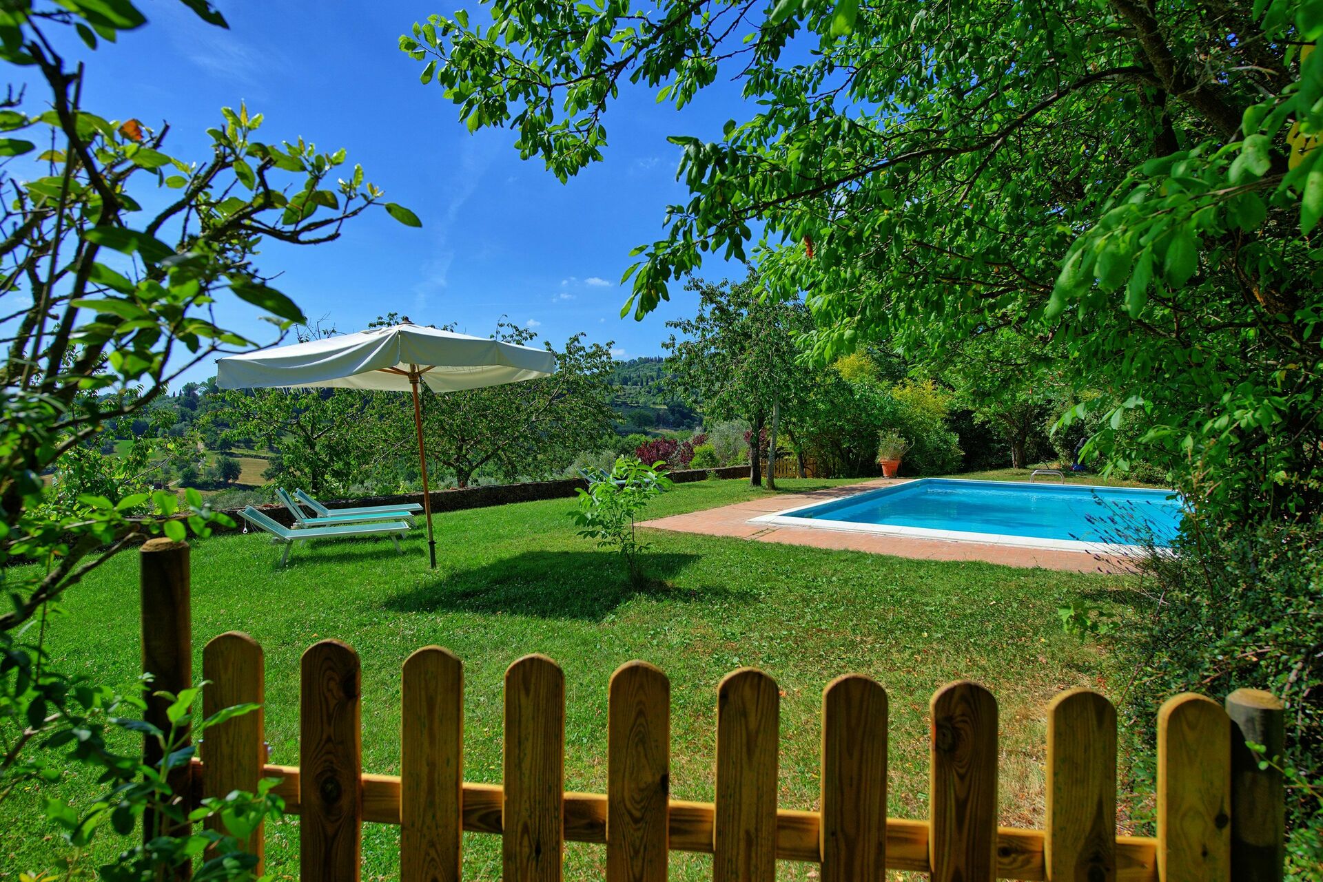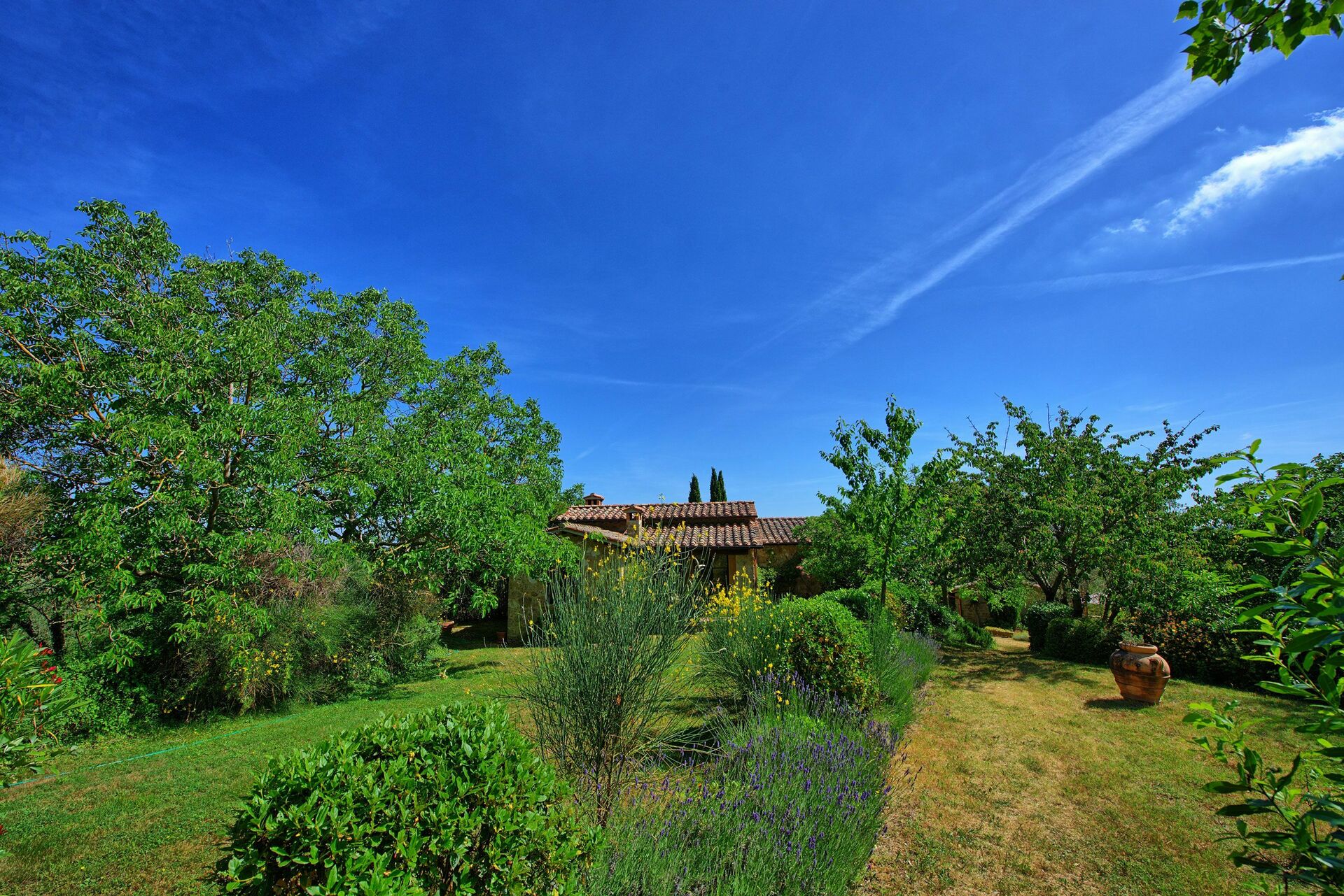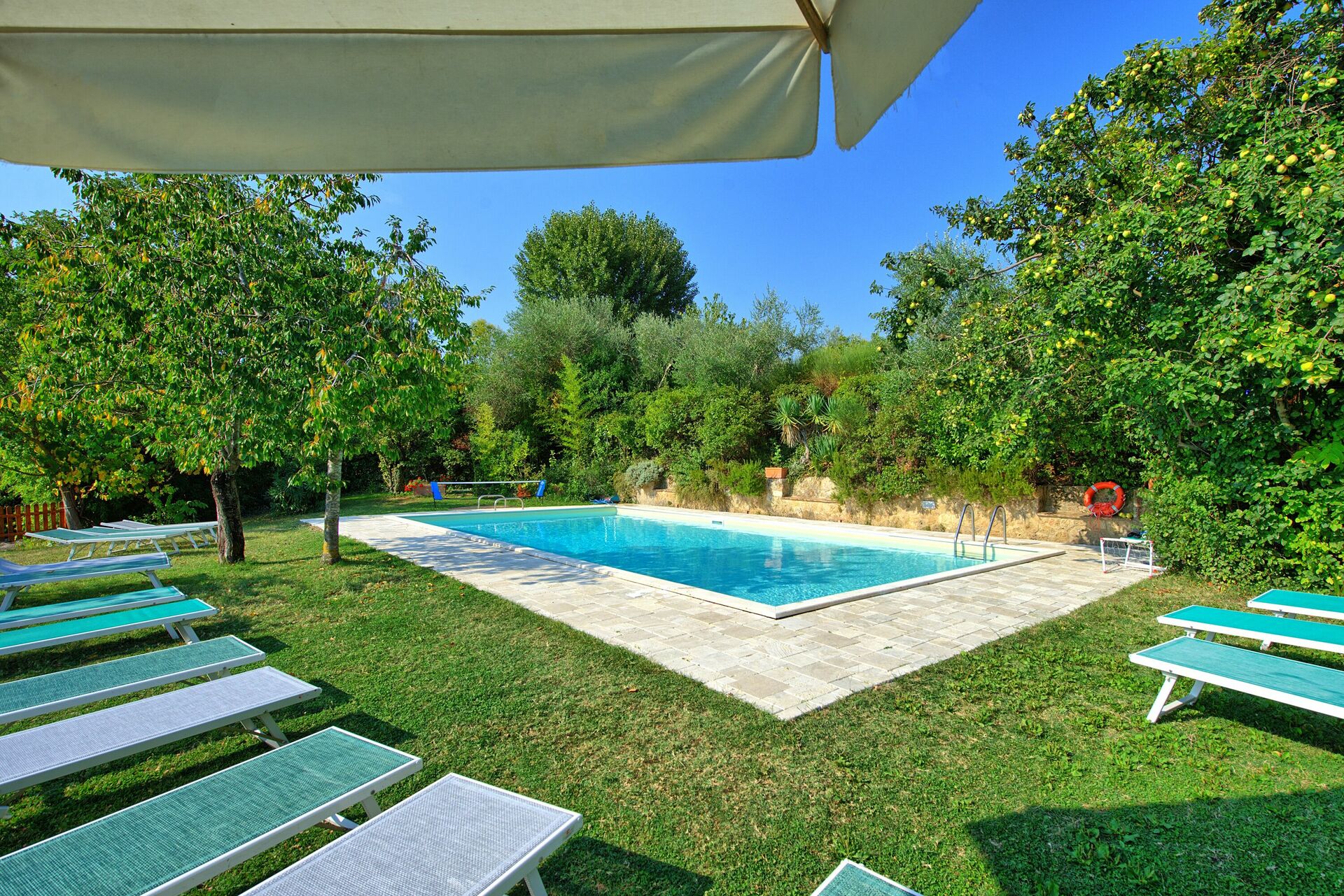 La zone jardin de cet appartement est assez grande pour recevoir tous les hôtes de Villa Sarteano.