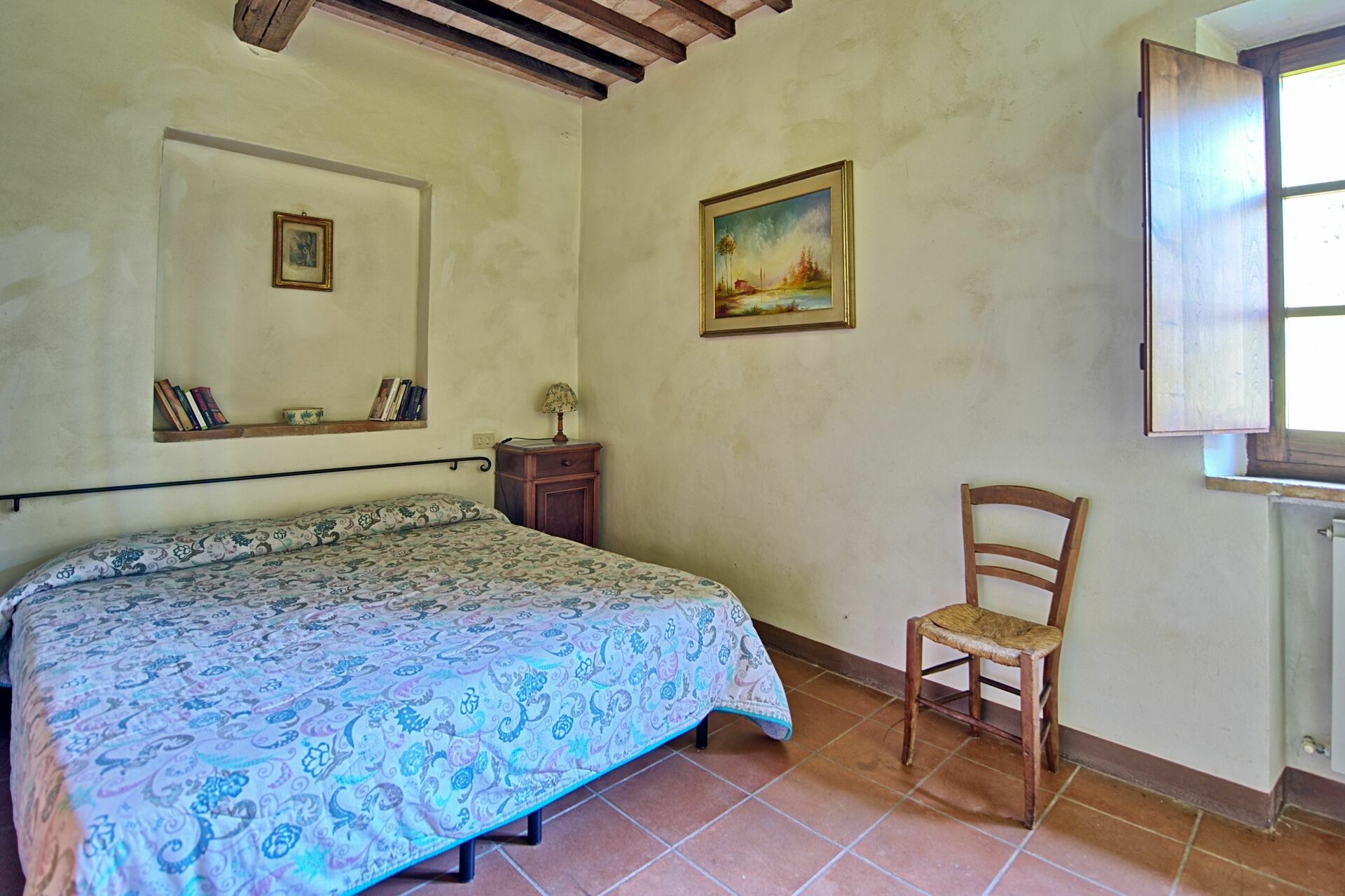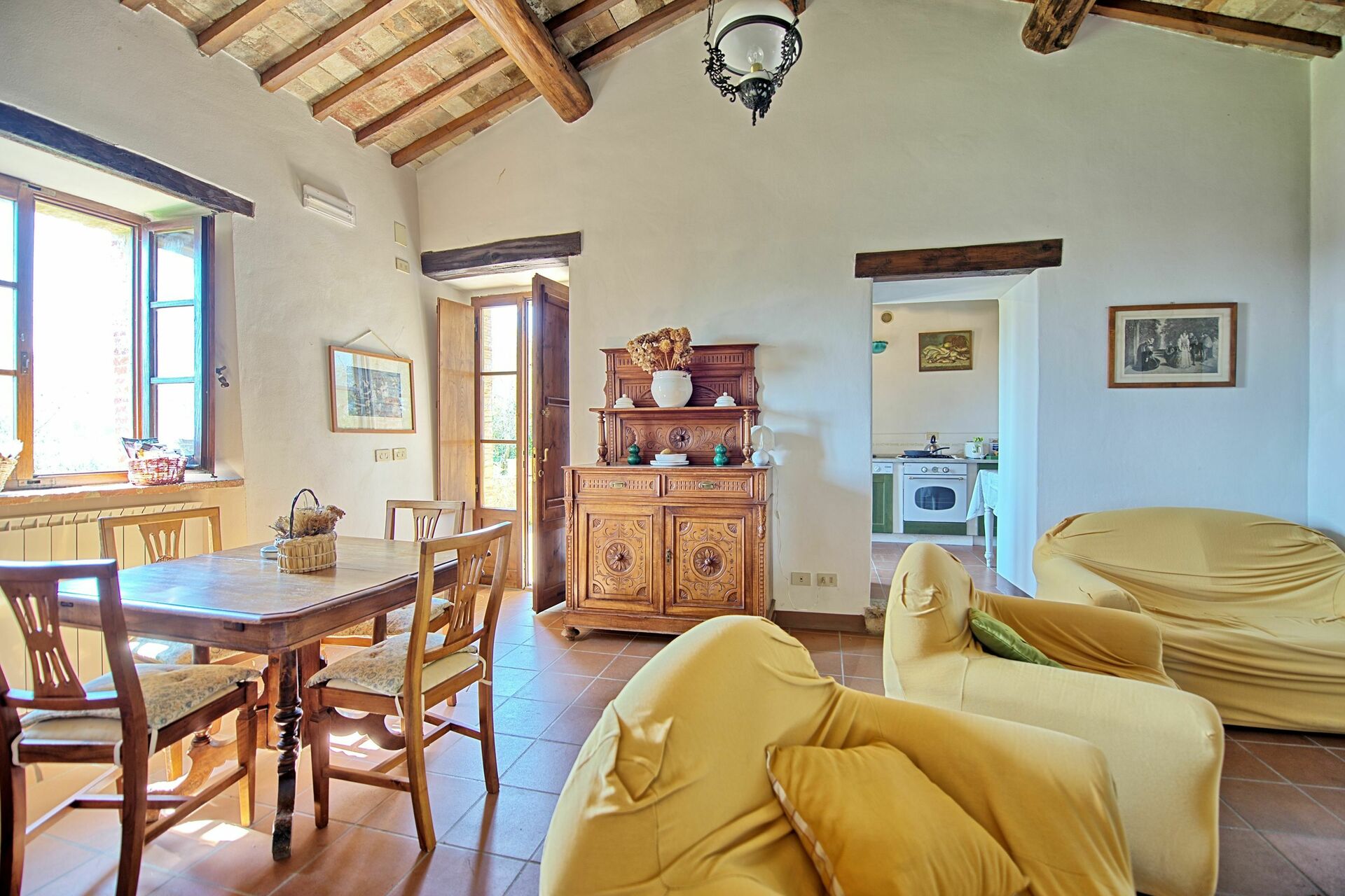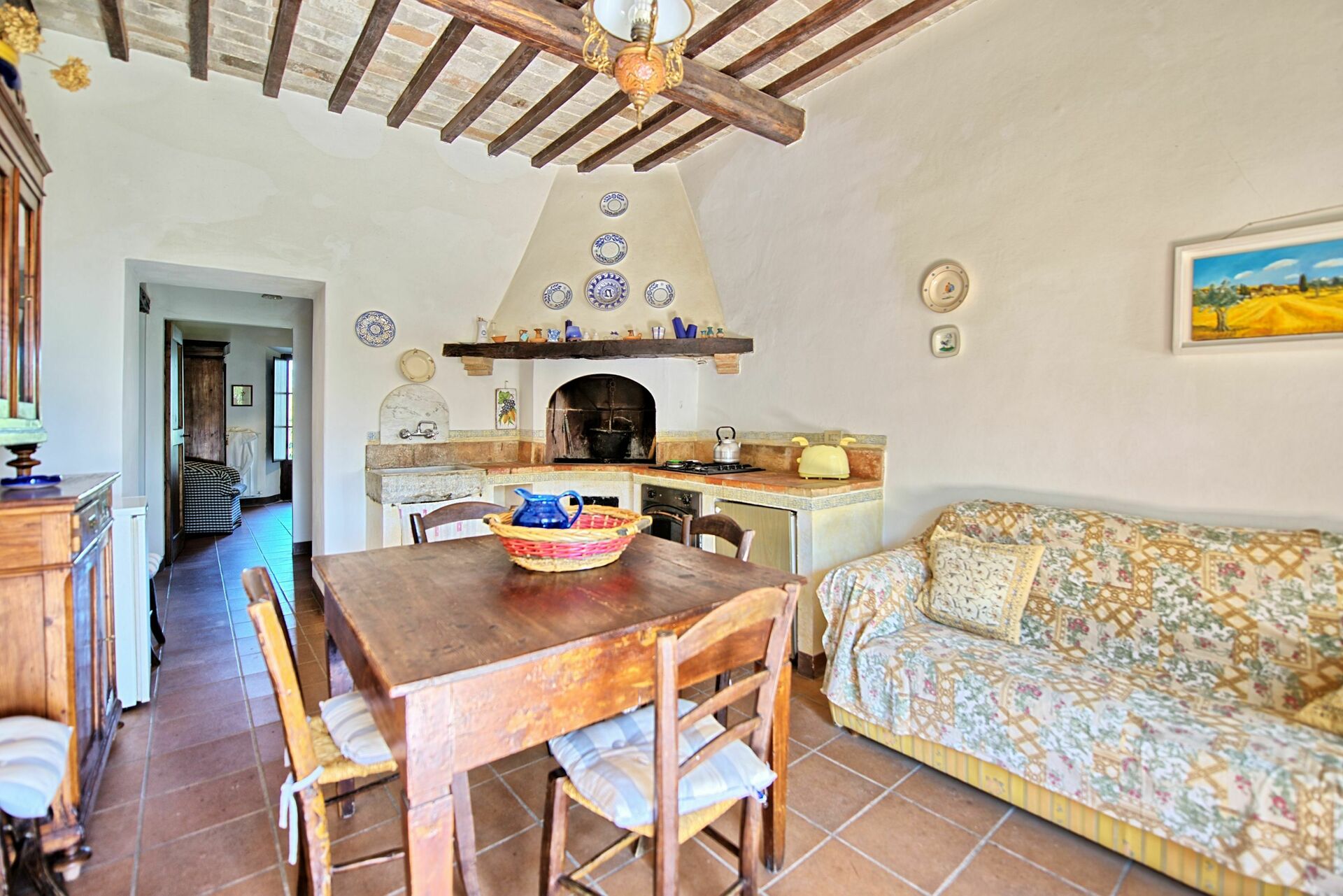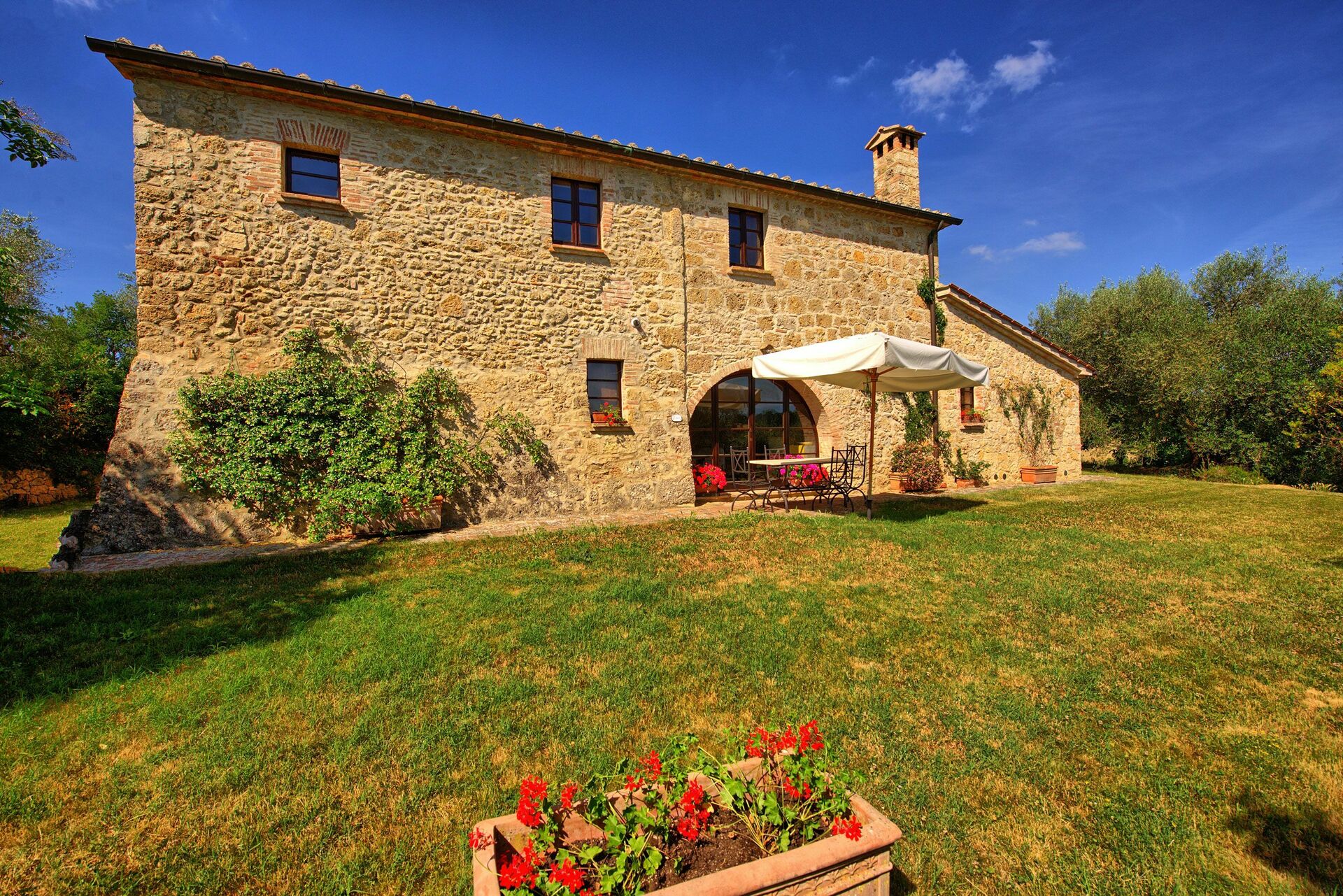 Cette propriété, datant du 18ème siècle, a été restructurée et divisée en 5 confortables appartements qui ne peuvent pas être loués séparément. L’ensemble est loué comme une unique grande propriété. Villa Sarteano, située à la campagne, jouit d’une position tranquille et panoramique. Piscine privée.