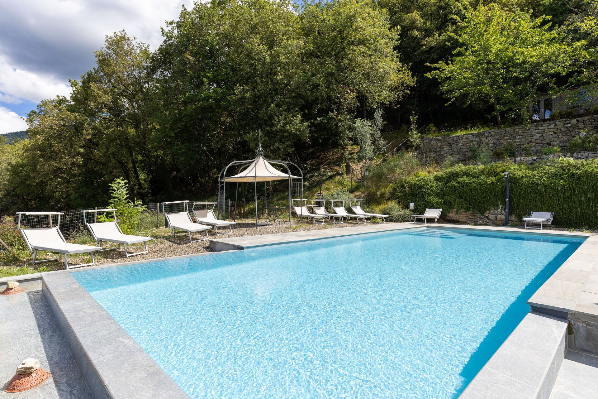 A l'intérieur de la propriété, il y a un beau jardin (1000 m2) sur plusieurs niveaux et une piscine réservée à l'usage exclusif des hôtes.