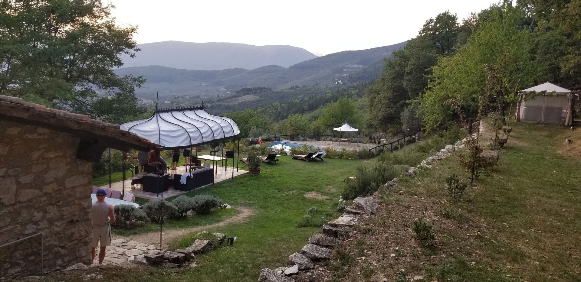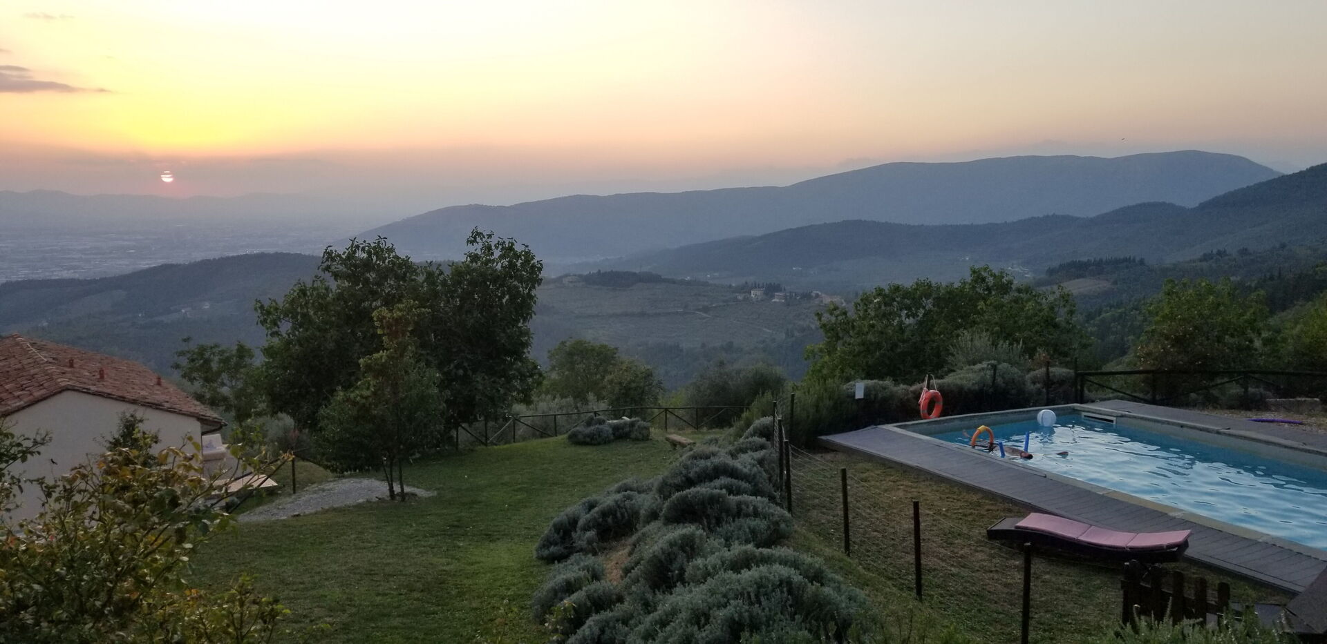 Tenuta Lonciano, the lovingly restored 800-year old former nunnery, is beautiful. The outdoor vistas of the Tuscan hills and of Florence in the distance are breathtaking and can be spied also from the charming stone and wrought iron windows in most of the bedrooms. We thoroughly enjoyed the herb gardens of lavender, sage, thyme, and rosemary, the plum trees, the grove of 2,500 olive trees, and the little farm with a friendly horse, two goats, geese, and the chickens that provided us with fresh eggs. Daniele is the consummate host—attentive, accessible and friendly. Our first day, we had car troubles. Daniele saved the day, driving us to and guiding us through the town supermarket to stock up for the week. We took up his suggestion to order an in-home, chef-prepared meal at the villa that was magnificent. This worked well for our family group of 5 adults, a child and a toddler. There is nothing better than taking in the view of the sun setting over the Tuscan hills and Florence at Tenuta Lonciano while sipping local wine and enjoying a spread of prosciutto, cheeses, breads, and olive oil. Tenuta Lonciano is lovely. Our week in Tuscany and our stay at the villa was an experience worth repeating; the venue is highly recommended. Thank you, Daniele, for a wonderful, memorable time!