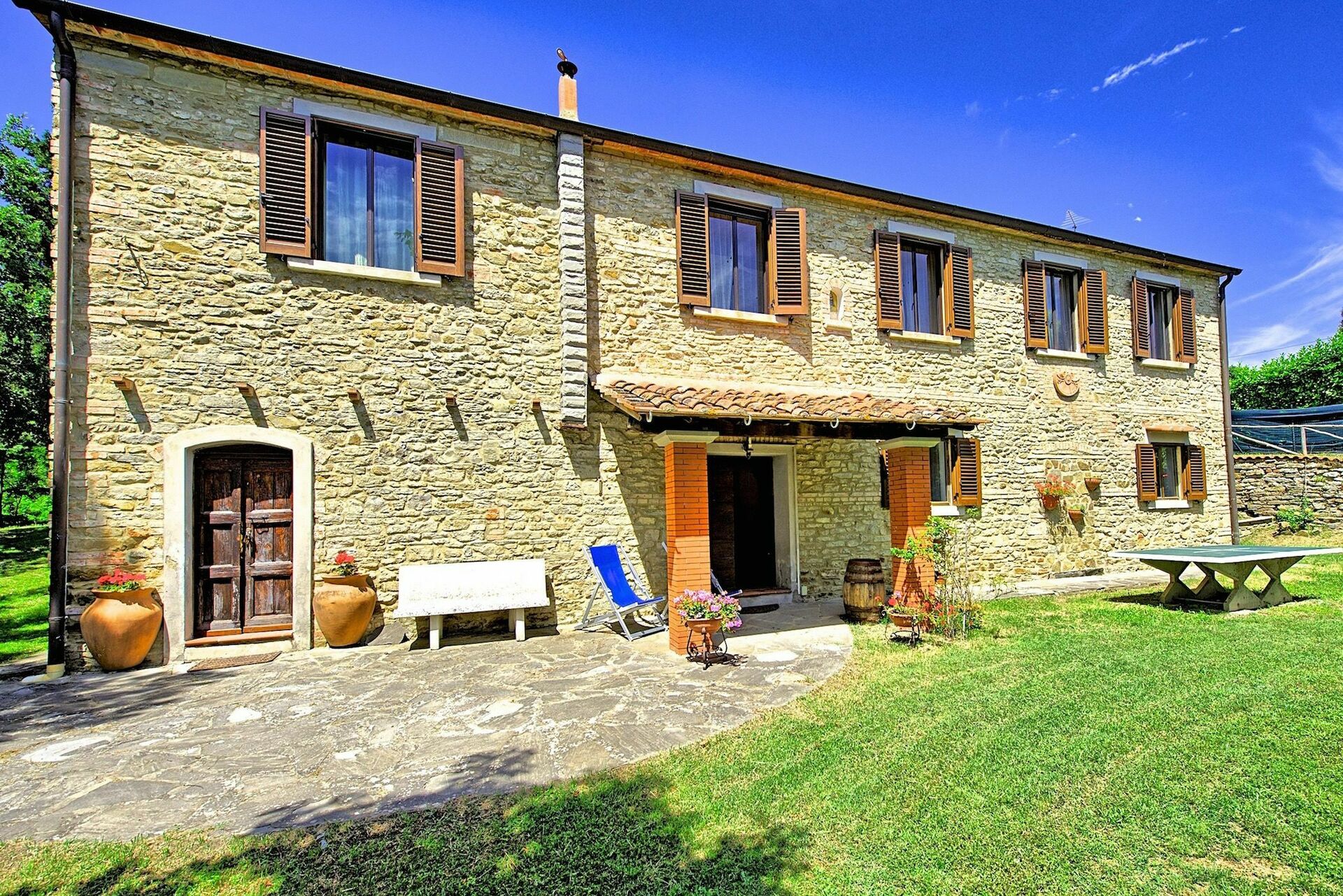 We had a great stay. The house is on top of a Mountain. So You have a great view over the landscape and arezzo. The next supermarket and the old town is just a short ride away. The house keeper war very friendly and helpful. The kitchen had everything we needed. Everything was clean, the bedrooms, bathroom and the pool was very nice. One star less, because the pictures of the inside are a bit different from the reality and the living room has a big pool f a weird smell