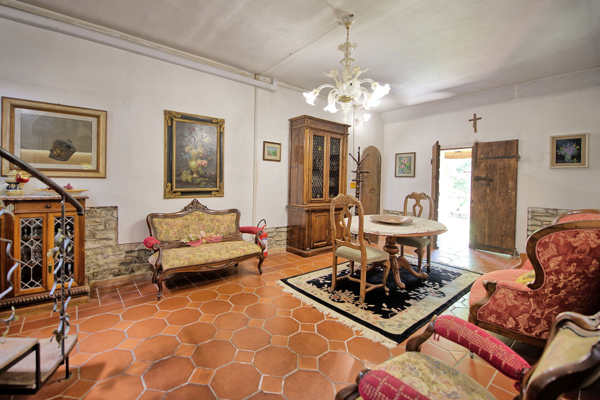 Premier étage (accessible de l’intérieur et de l’extérieur): grand séjour avec poêle à bois et billard, une chambre avec un lit à une place, 3 chambres doubles, une chambre avec 2 lits à une place, salle de bains avec douche, salle de bains avec douche.