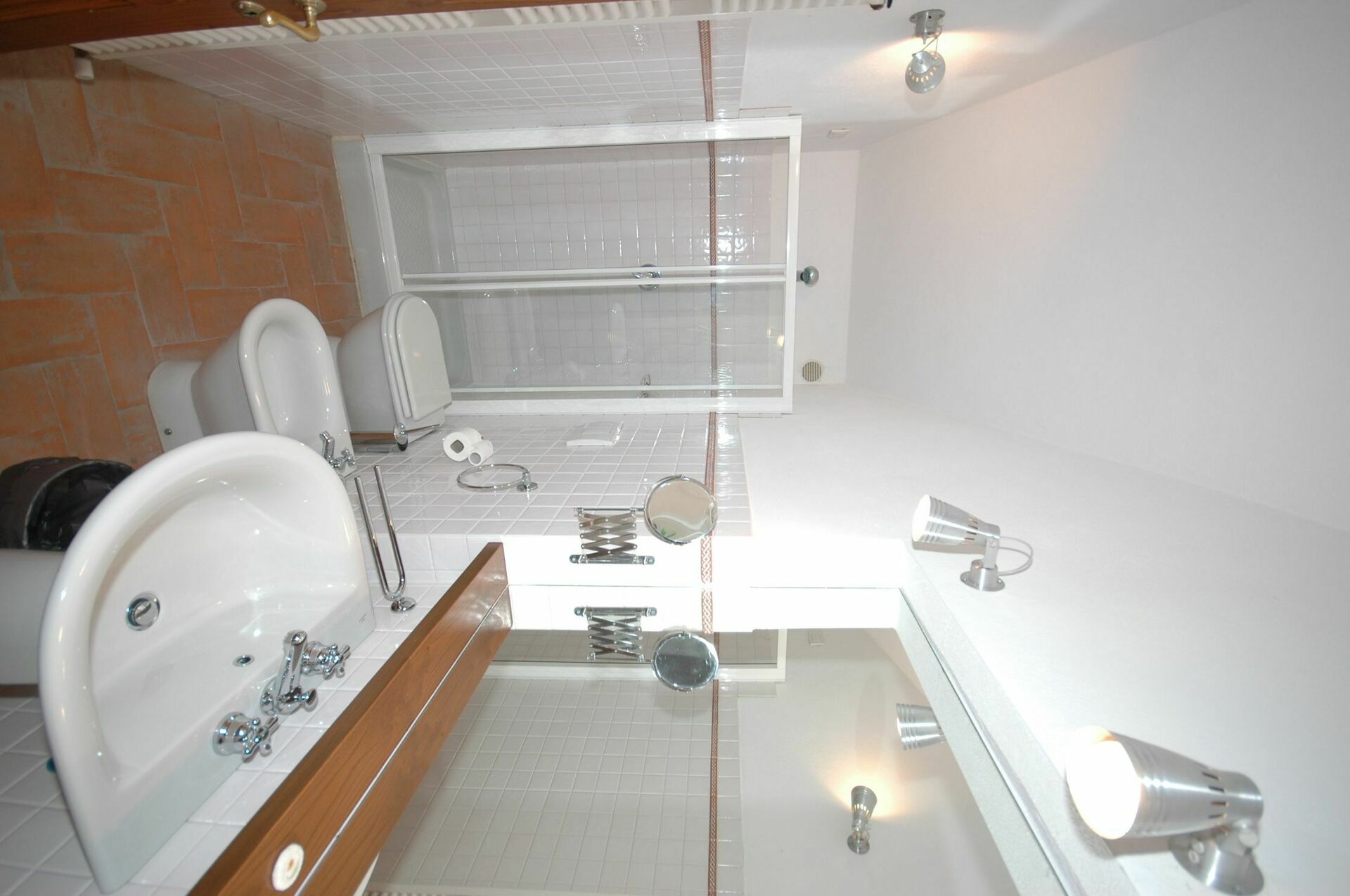 Premier étage: séjour/salle à manger (TV-SAT) avec cheminée, petite cuisine (four, freezer, lave-vaisselle), une chambre double, une chambre avec deux lits à une place, salle de bains avec douche, salle de bains avec baignoire.