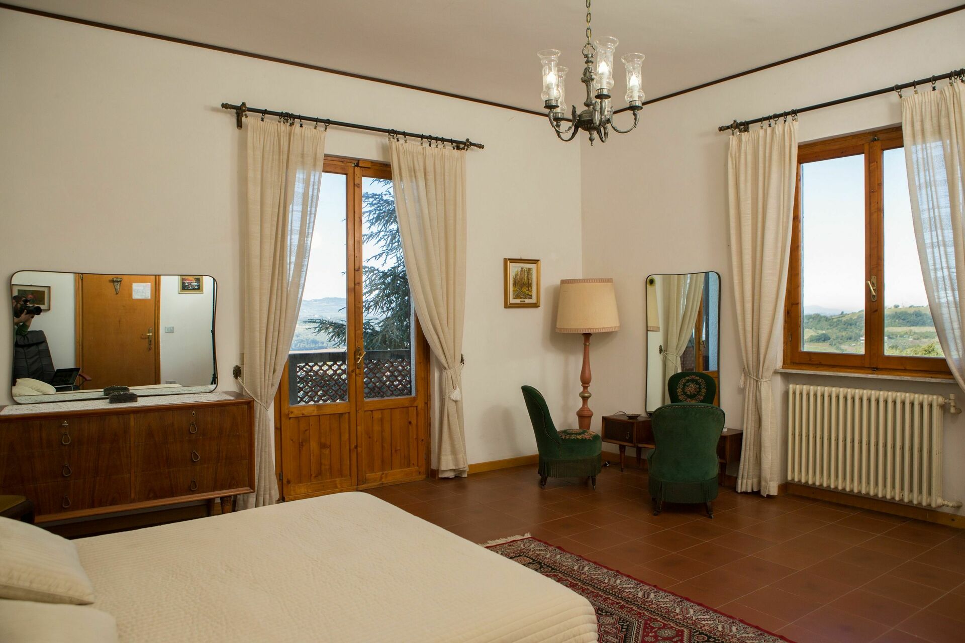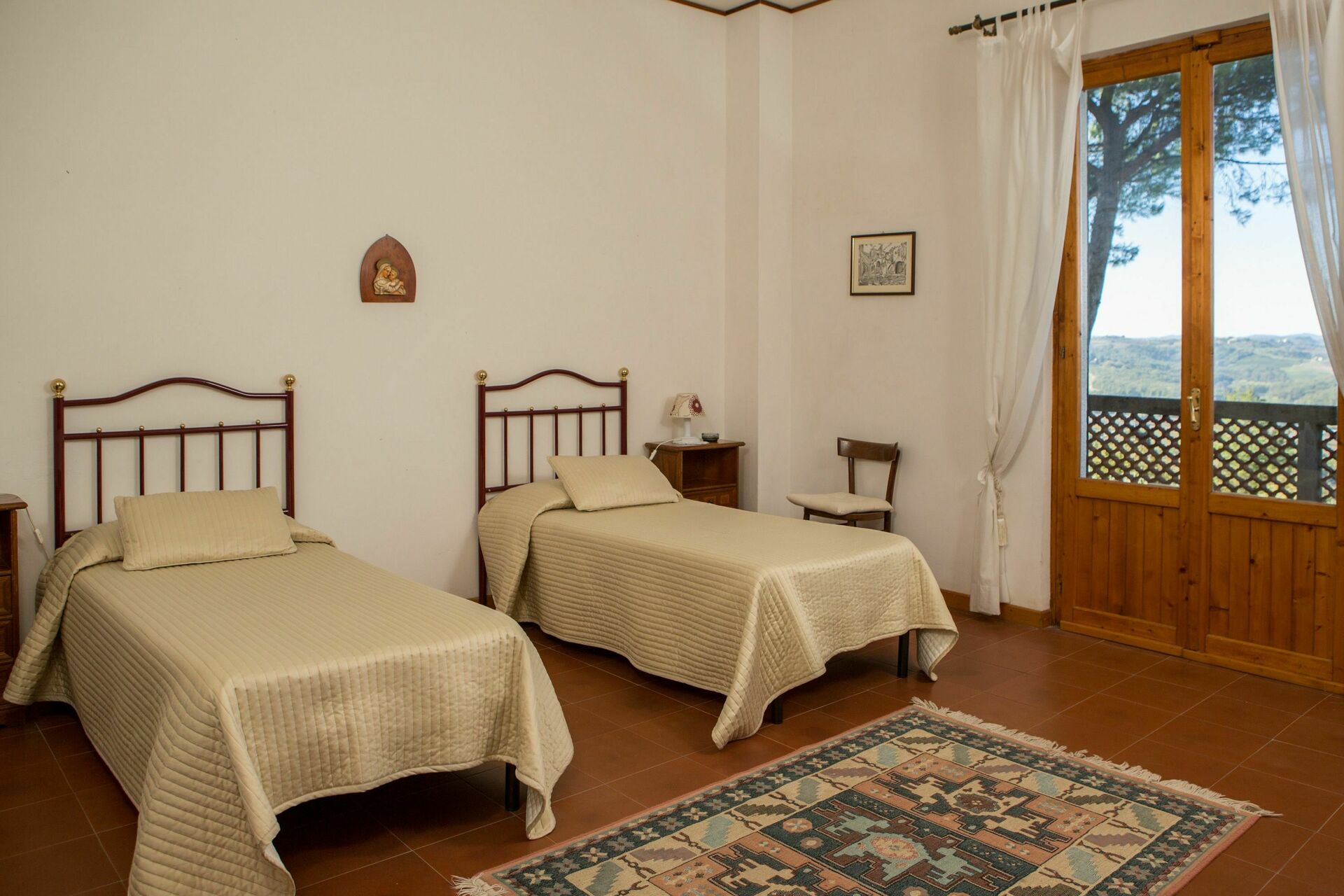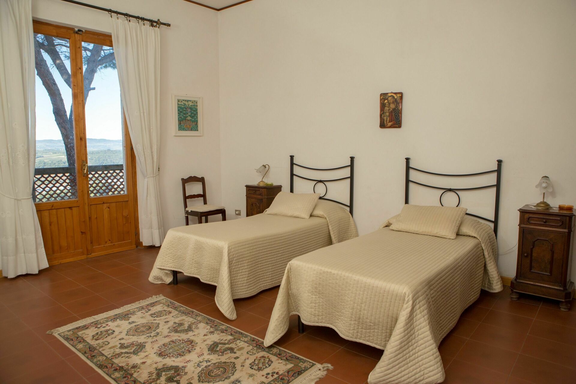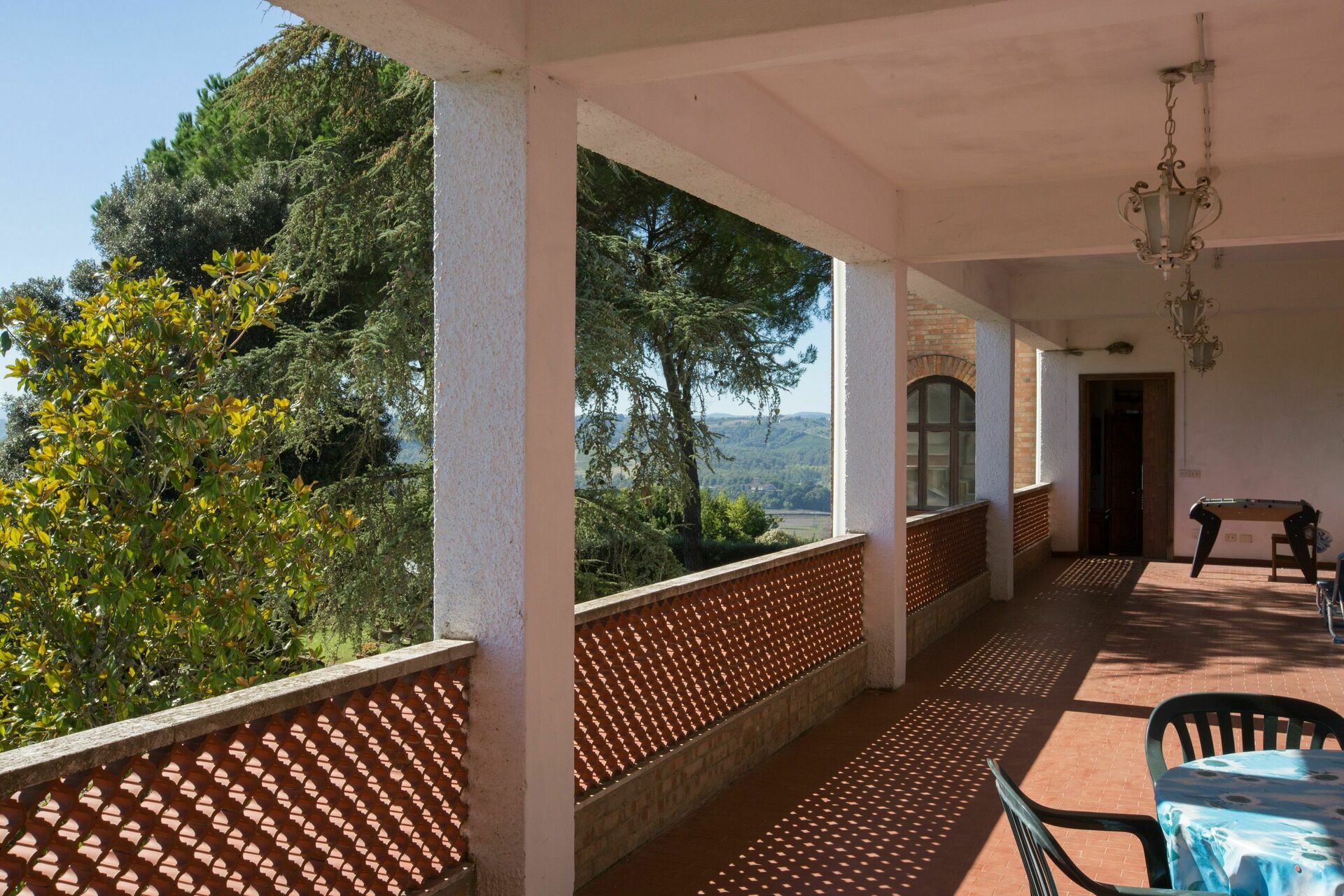Grande villa en position panoramique avec piscine privée à 13km de San Gimignano. La maison, de par ses dimensions et sa capacité d’accueil, est indiquée pour un groupe ou une famille nombreuse. Au rez-de-chaussée, un beau salon qui se prolonge sur une longue terrasse couverte, peut facilement accueillir tous les hôtes. Grands espaces extérieurs à disposition. Dans les alentours, de nombreux centres d’intérêt comme les villes de San Gimignano, Certaldo, Volterra, Sienne et Florence, etc. Ameublement simple mais confortable. La propriété se compose de la maison principale (12 couchages) et d’un appartement (6 couchages) situé derrière la villa mais non-communicant. Accès à la villa par un bref tronçon de route non-goudronnée. Parking dans la propriété.