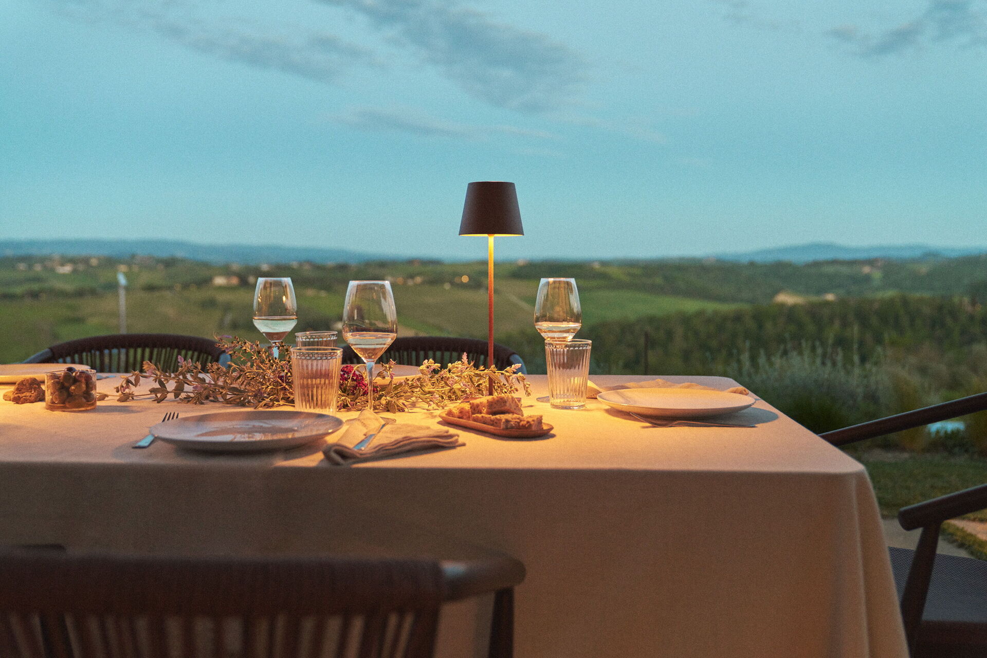 À l’extérieur, les hôtes peuvent profiter d’un grand jardin bien entretenu, d’une zone aménagée avec table et chaises pour manger en plein air tout en admirant une vue panoramique enchanteresse s’étendant sur les collines du Chianti et les célèbres tours de San Gimignano.