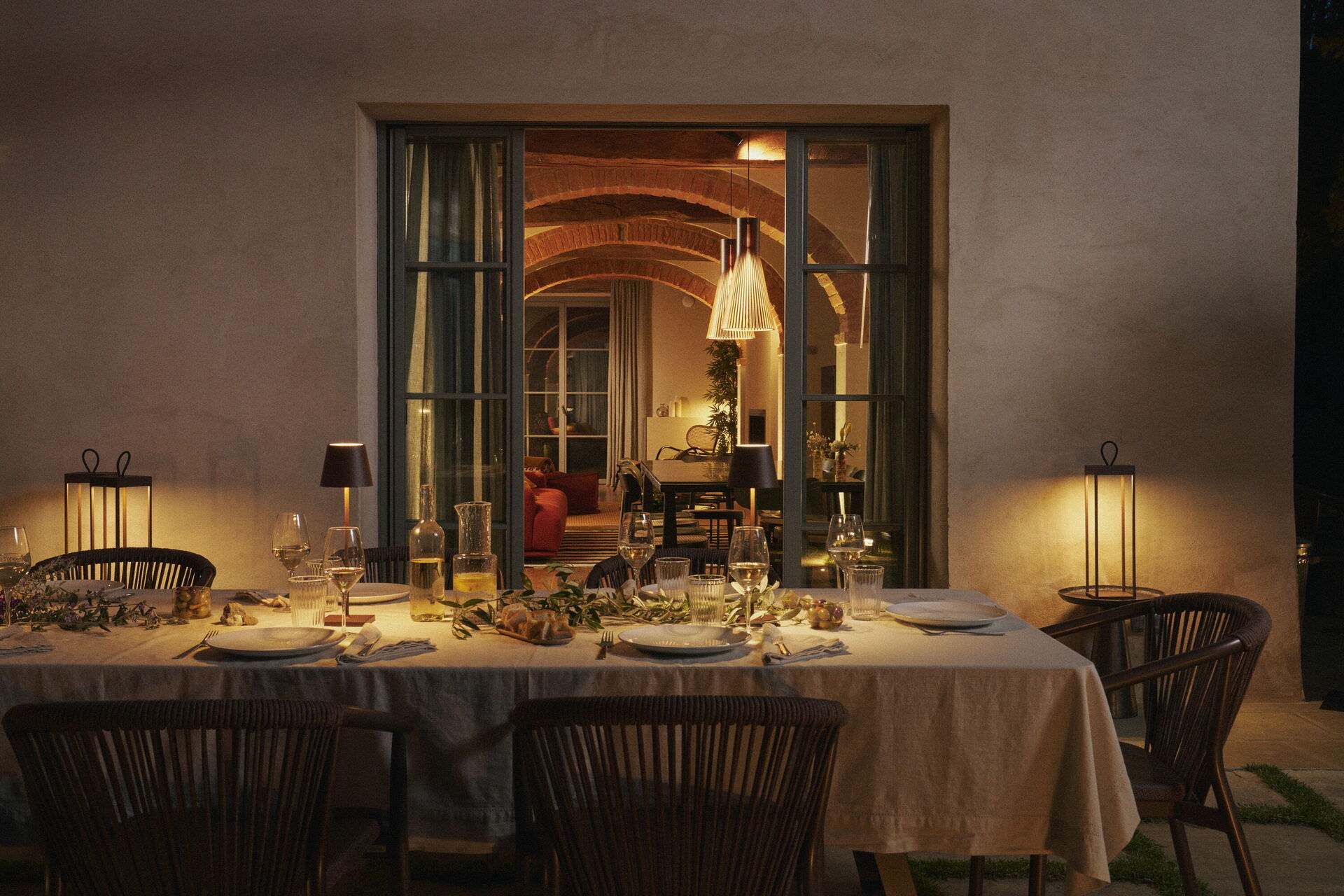 - patio panoramique aménagé avec table et chaises pour manger en plein air