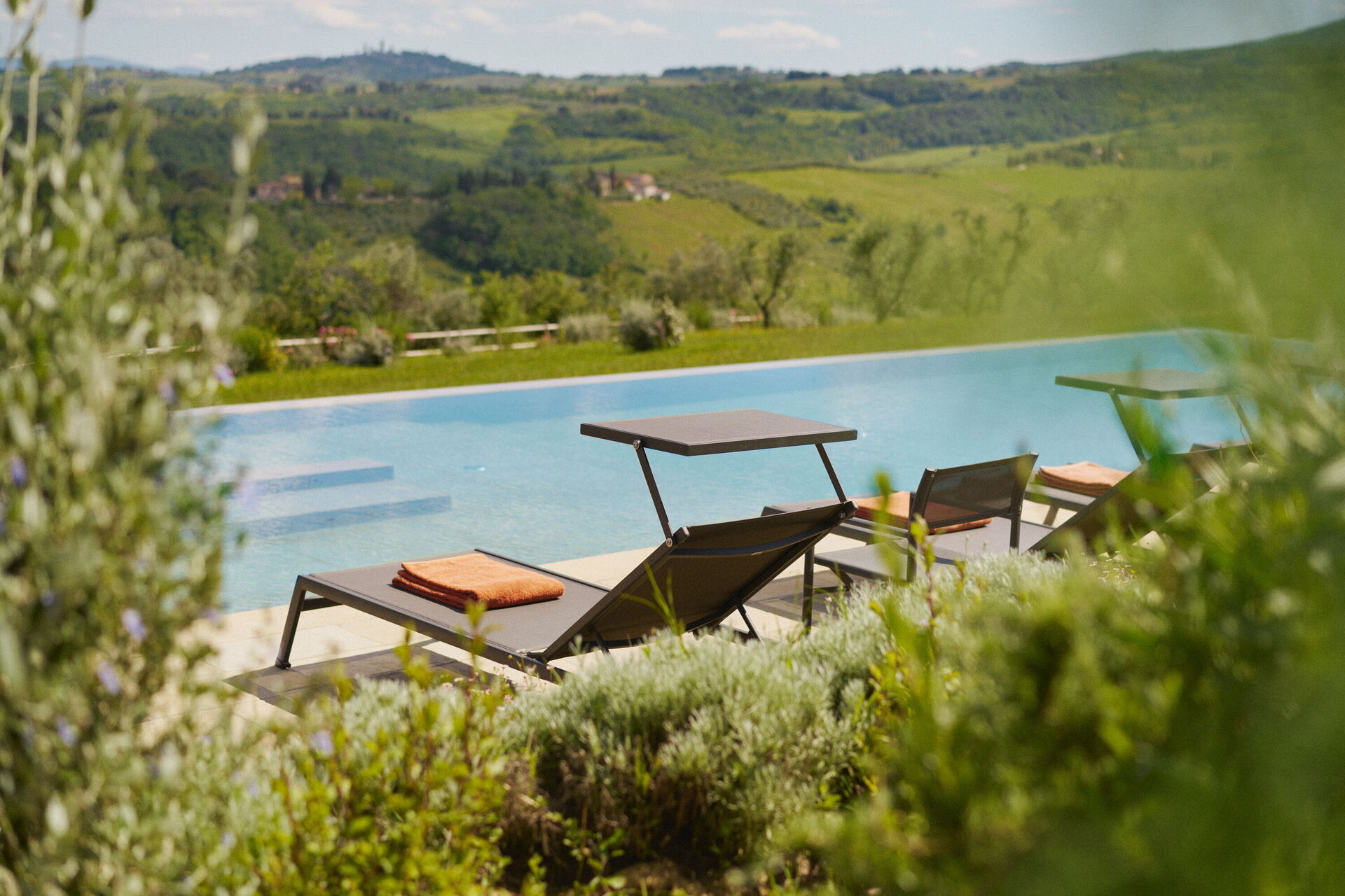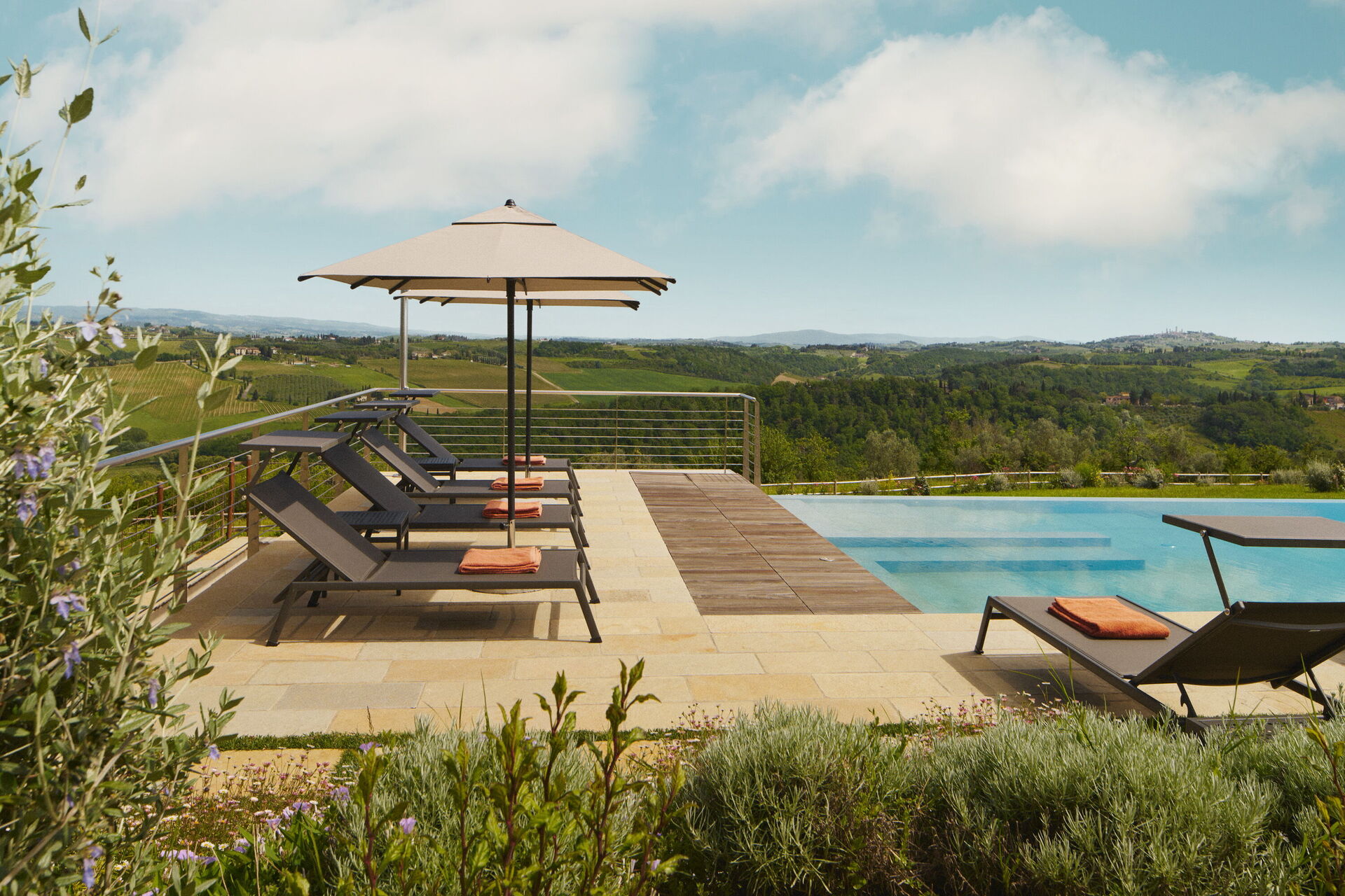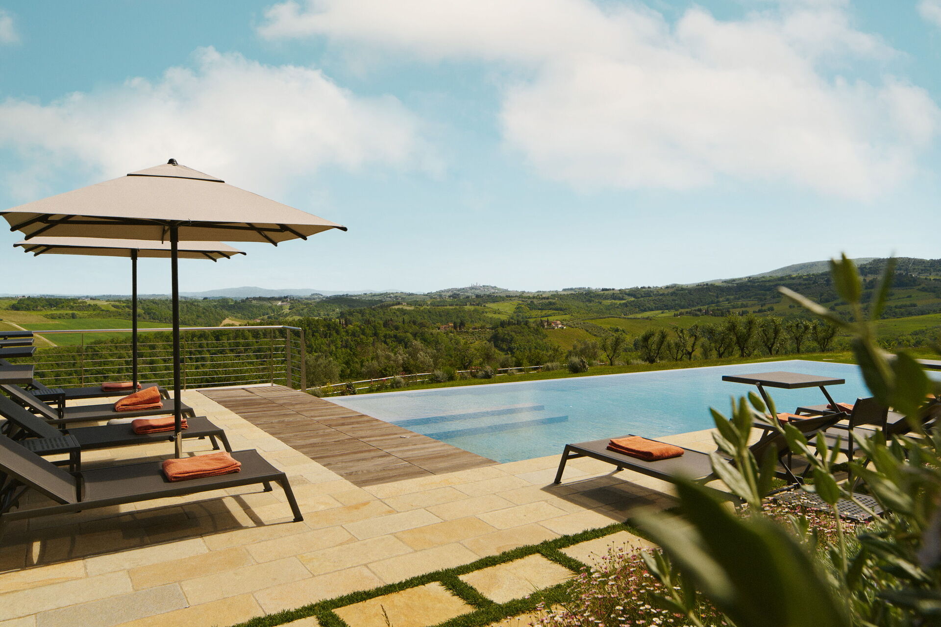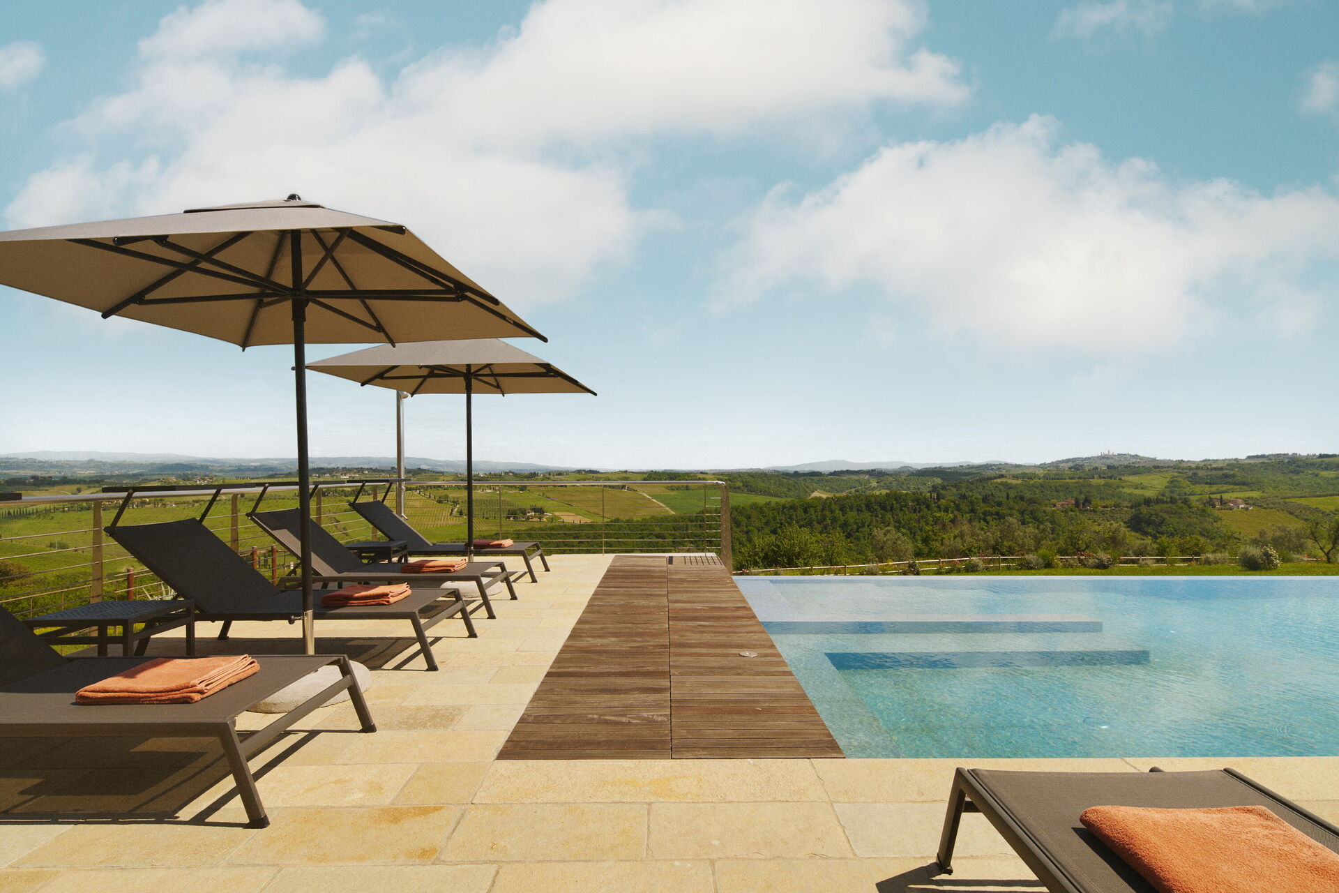Villa Elmi est une villa de luxe située à proximité de San Gimignano dans un cadre paisible et très panoramique sur les collines du Chianti, en Toscane.