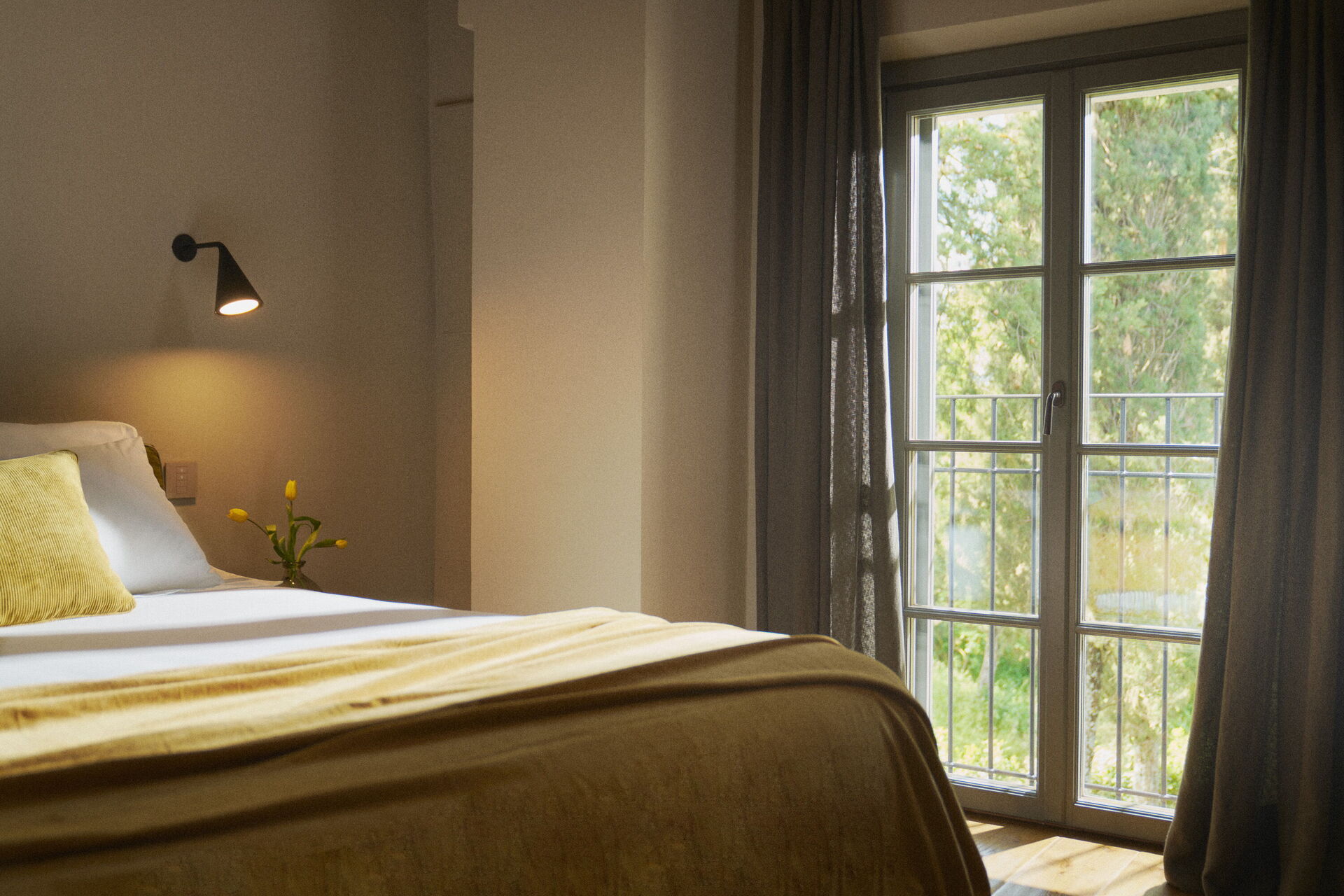 Deux des quatre chambres à l’étage peuvent être communicantes grâce à l’ouverture d’une porte.