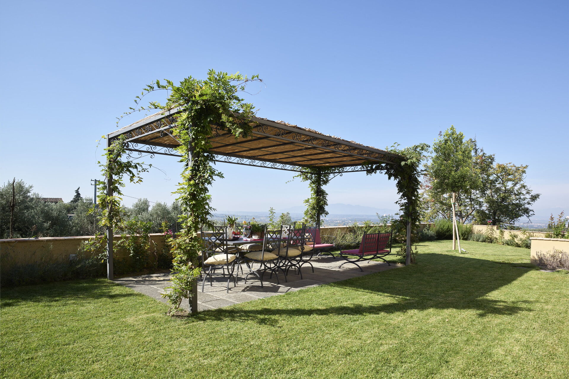 Si vous êtes à la recherche d’une belle maison avec piscine privée pour vos vacances en Italie, vous ne serez pas déçu par la beauté de cette propriété exclusive: un splendide jardin panoramique avec piscine privée et gazebo avec table et chaises vous garantira détente et plaisir. À l’extérieur et à l’intérieur, tout est bien entretenu et suivi personnellement par la famille des propriétaires.
