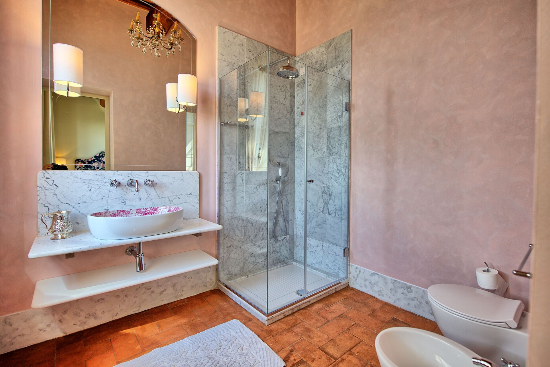 The house appears to have been purposed built around the cultural aspect of Leonardo Da Vinci. Absolutely beautiful and could be better suited to two mature couples using it as a base than a family. We found that there was no flow between the main house and the pool which is at the back side of the house. Manuela was very helpful and friendly with us at check in. I was concerned about the alarm sensors / cameras in the bedrooms and the main living area. Manuela assured me that they were not on in the bedrooms. From my understanding of these things she was right as none of the lights in the bedroom came on when walking infront of the sensors. However, you might want to check the main living area, and also the cameras oustide above the pool and the sides of the house. These appear to have been on as they were shining red and green at night time. The 8 chairs around the table under the gazebo had no cushions which we found very suprising as the garden set is beautiful. We went to the local garden centre and bought cushions for the 8 chairs which made the chairs a whole lot more comfortable. We left these at the house for the next guests.