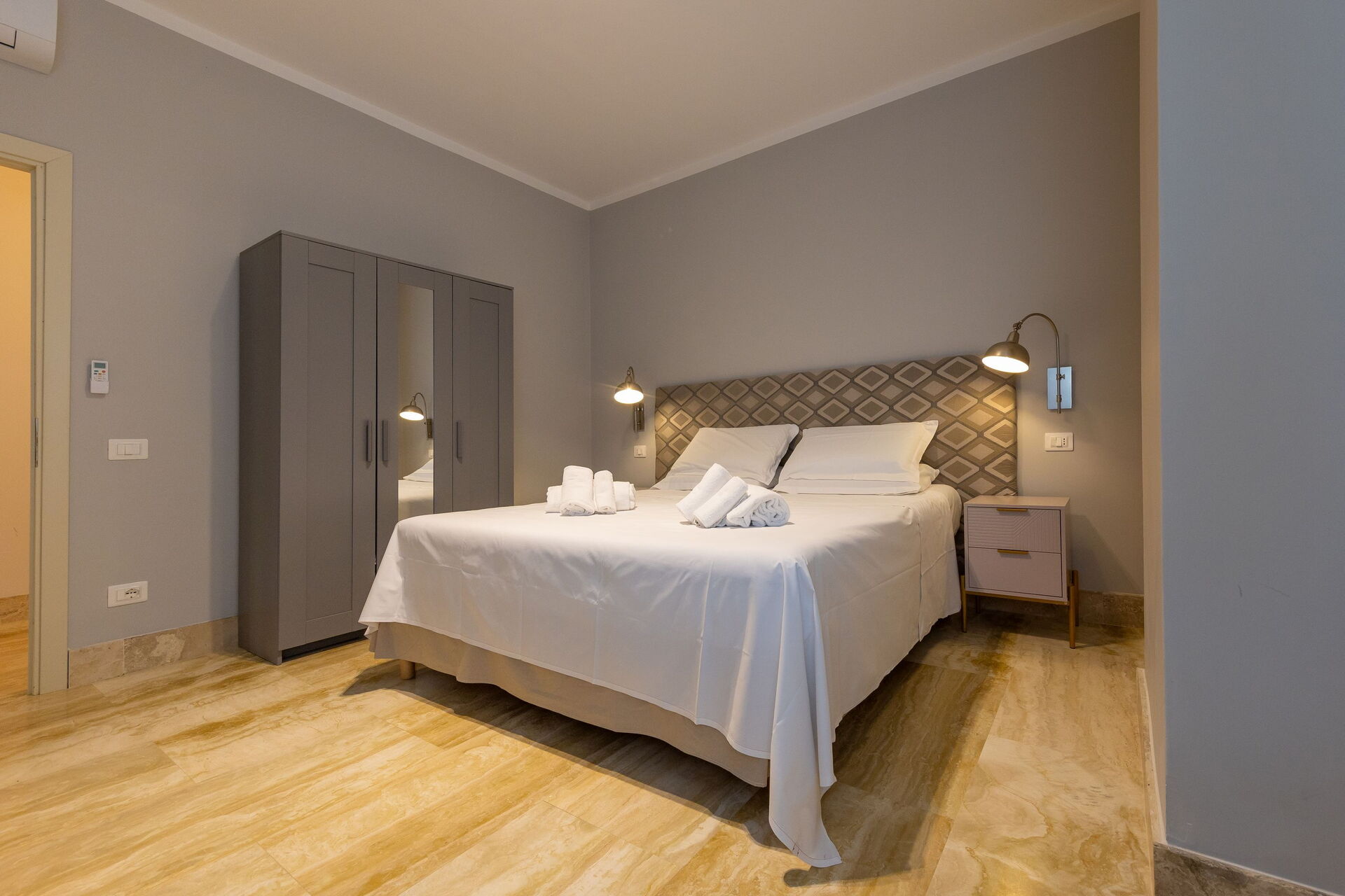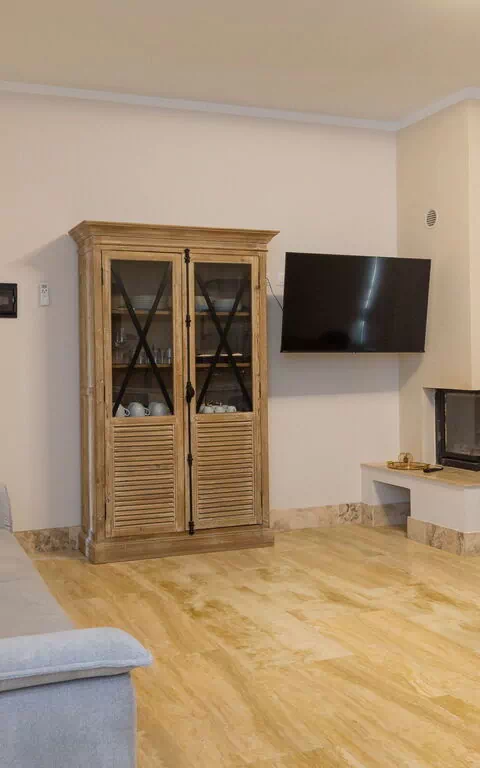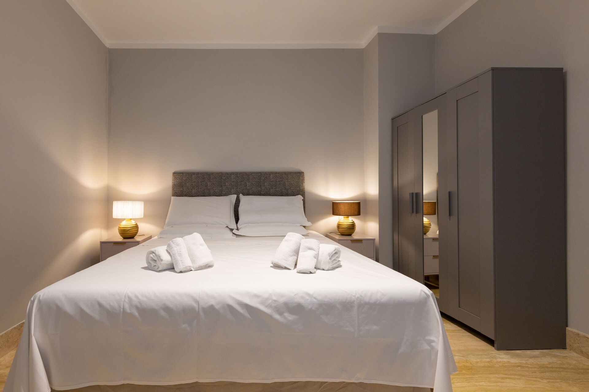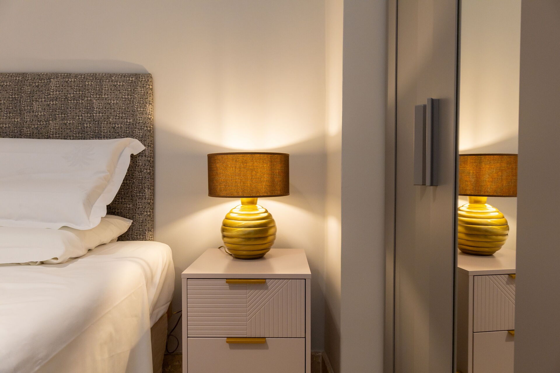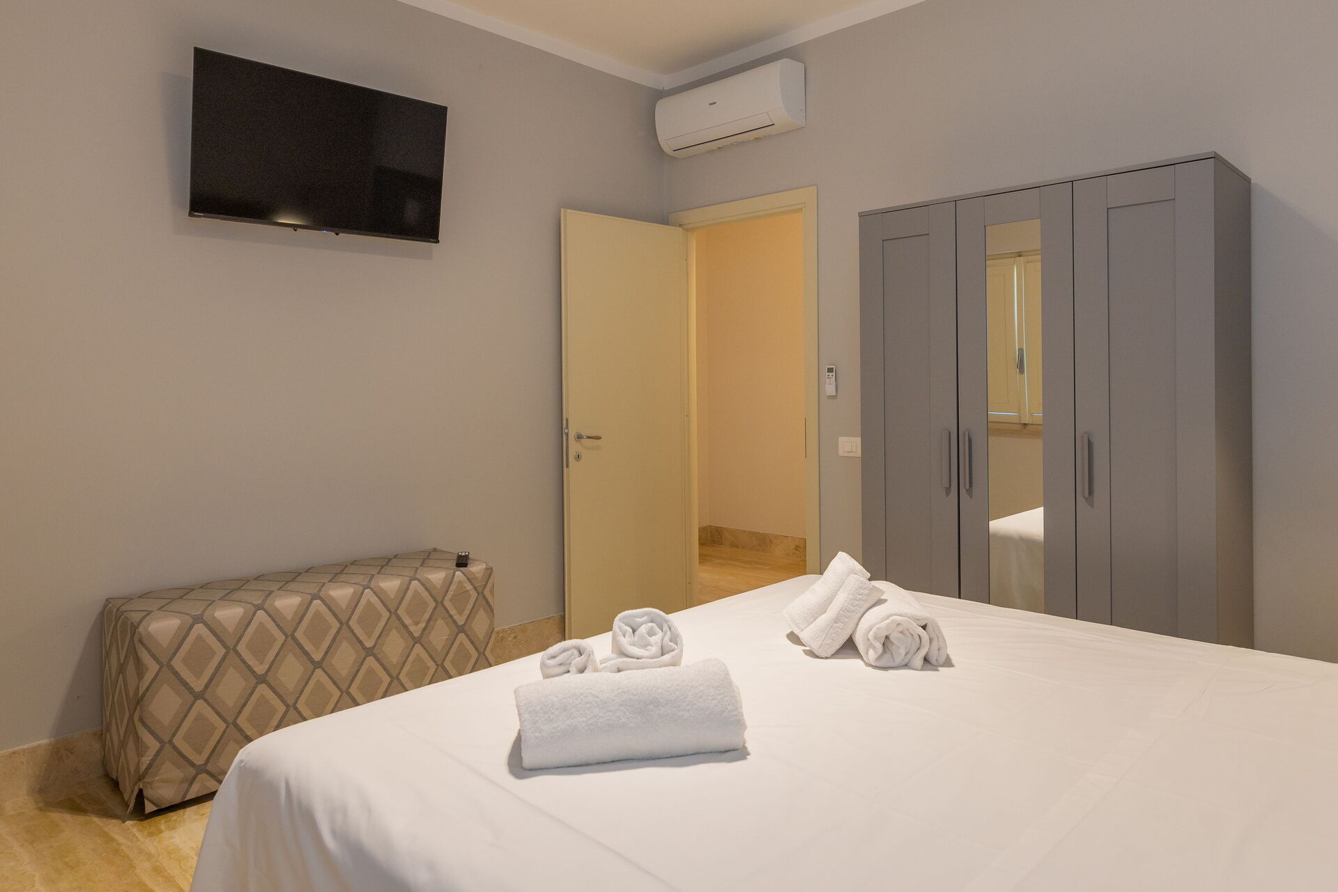 Premier étage: salon (smart TV, air conditionné) avec canapé-lit double, coin repas et kitchenette (lave-vaisselle, four, réfrigérateur, machine à café expresso, grille-pain), 2 chambres doubles (chacune avec air conditionné), salle de bain avec douche.